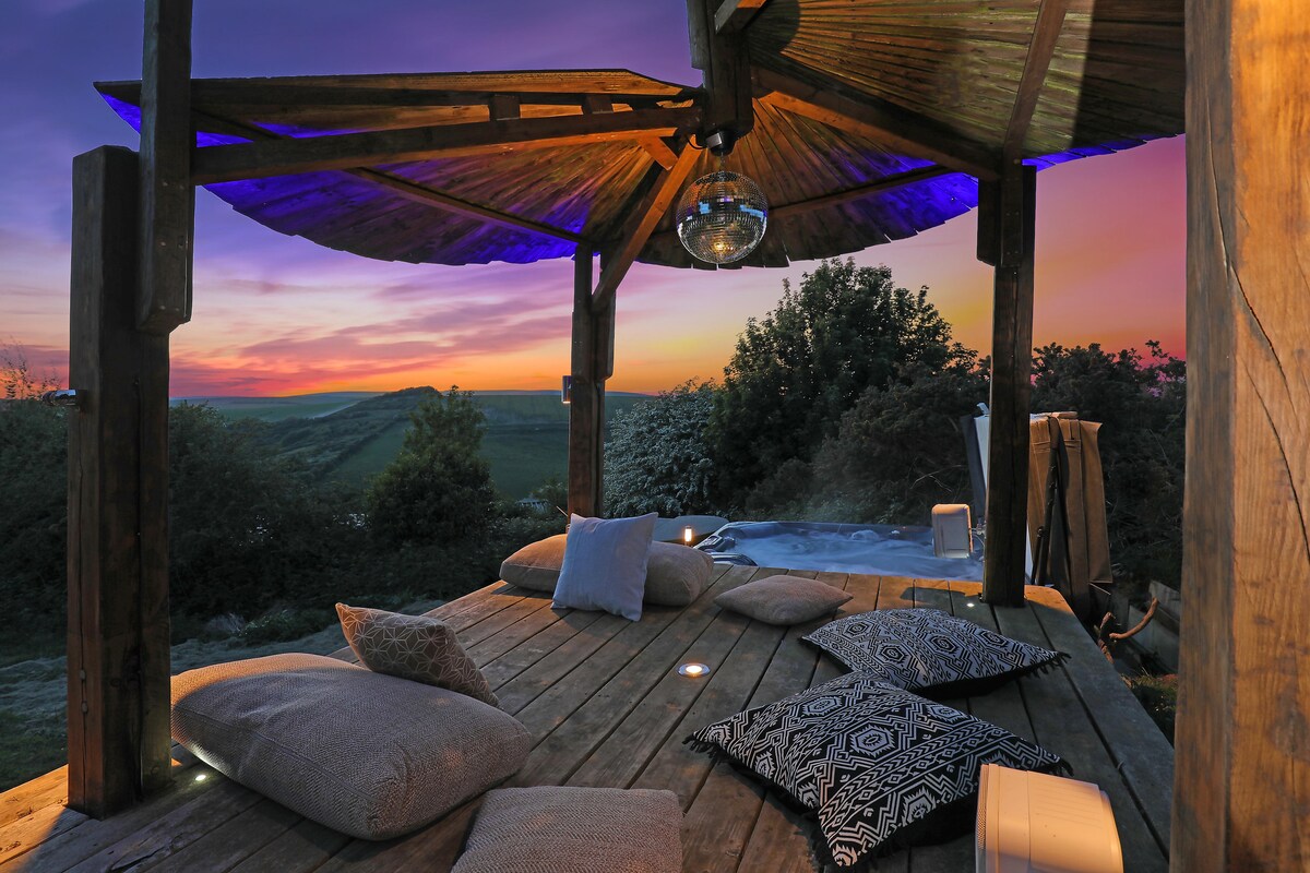 Élvezd a természet hangjait ebben a békés, domboldalon található szálláshelyen a South Downs Nemzeti Park szélén. A Hideaway két hangulatos víkendházat, két luxus harangsátrat, egy privát pezsgőfürdőt, egy szabadtéri konyhát grillezővel és hűtőszekrénnyel, egy zuhanyzó/WC-blokkot és egy gyönyörű, többszintű szabadtéri társalgót foglal magában. Emellett hozzáférhetsz a nemzeti park két hektáros, lenyűgöző területéhez is, amely tökéletes a pihenéshez, felfedezéshez vagy egyszerűen csak a kilátás élvezetéhez.