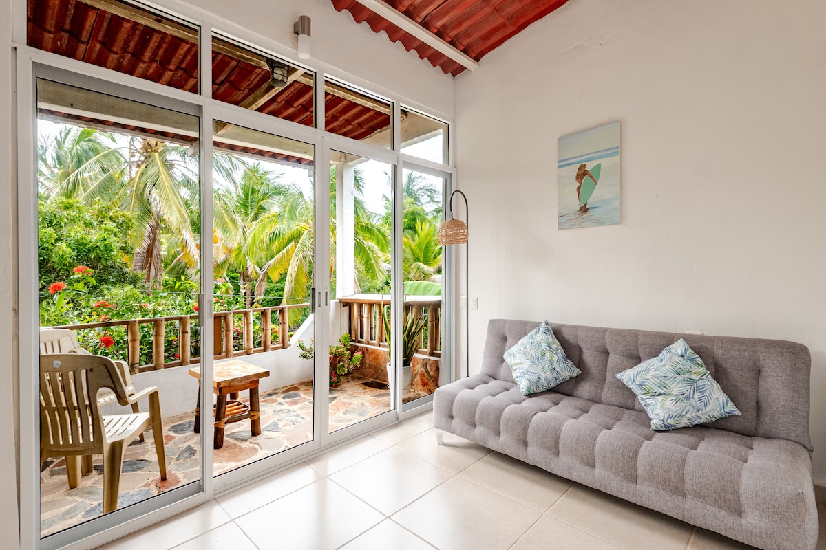 Punta Zicatela városában található, mindössze néhány perc sétára a strandtól, éttermektől és egyéb látnivalóktól. Kiváló internetkapcsolattal, optikai szálas és Starlink. Franciaágy, légkondicionáló, ventilátor, hűtőszekrényes teakonyha, kávéfőző és vízszűrő. Egy teljes fürdőszoba és egy kis szekrény. Erkélye van egy kis asztallal és két székkel, valamint fa redőnyökkel, kilátással a kertre. Ezenkívül a második szinten saját terasszal rendelkezik, gyönyörű kilátással, egy kis asztallal és székekkel.