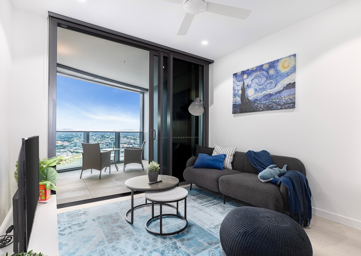 Szállj fel a város fölé, és lazíts a New Queen's Wharf nyugodt, egekbe törő luxusában. Az 59. emeleten található, gyönyörűen válogatott, vadonatúj apartman a természet ihlette, megnyugtató belső terekkel és Brisbane látképének, folyójának és hegyeinek lélegzetelállító, zavartalan kilátásával ötvöződik. Lépj be egy nyugodt térbe, ahol a lágy, földszínű tónusok, a természetes textúrák és a luxuskivitel tökéletes pihenést biztosítanak – akár üzleti ügyben, akár romantikus kiruccanásra, akár békés kikapcsolódásra érkeztél a város szívébe.