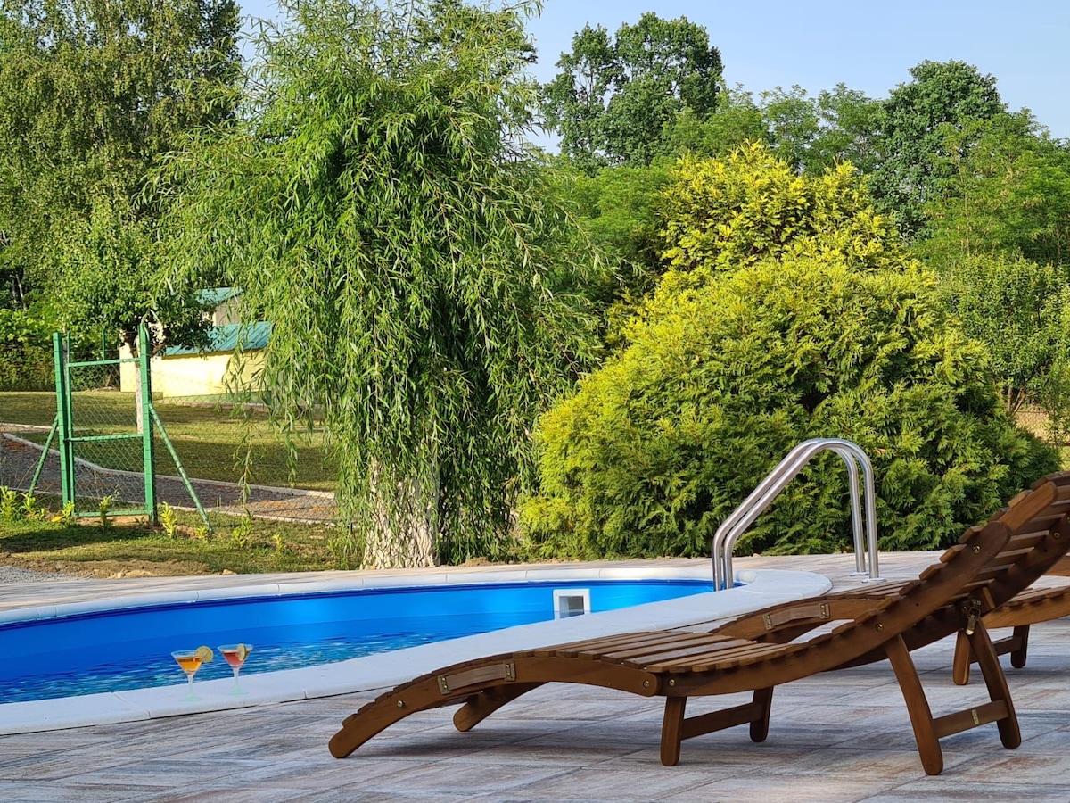 Opustite se u ovom ugodnom i lijepo uređenom smještaju. 5 km od centra Slavonskog Broda,na osami,opremljena sa svim potrebnim za odmor,kategorizirana s 4 *, vanjski bazen, unutarnji hidromasažni bazen, infracrvena sauna, wifi,klime,tv,masažna fotelja,ozvučenje,posuđe,pribor za jelo,stol za stolni tenis, party prostorija.....