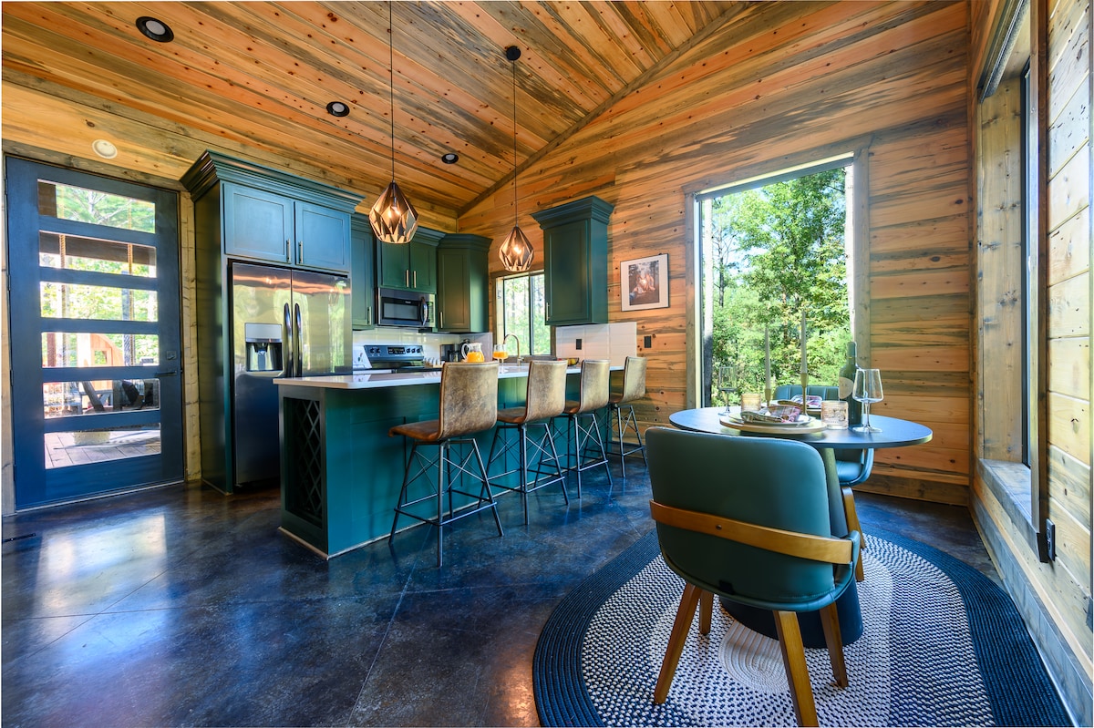 Modern luxus víkendház | 2 lakosztály king méretű ággyal • Elektromosautó-töltő • Kisállatbarát Fedezd fel a The Modern-t – egy lenyűgöző, dizájnorientált víkendházat egy 1,4 hektáros privát területen Broken Bow-ban. Magas, 18 láb magas mennyezet, nagy ablakok, teljesen fehér szakácskonyha, fatüzelésű kályha és 2 luxus king-szoba (az egyik mély káddal). Élvezd az erdőre nyíló kilátást, kuporodj le a tűz mellé, és töltsd fel elektromos járművedet a helyszínen. Kutyabarát is! Foglald le a felejthetetlen kiruccanásodat még ma.