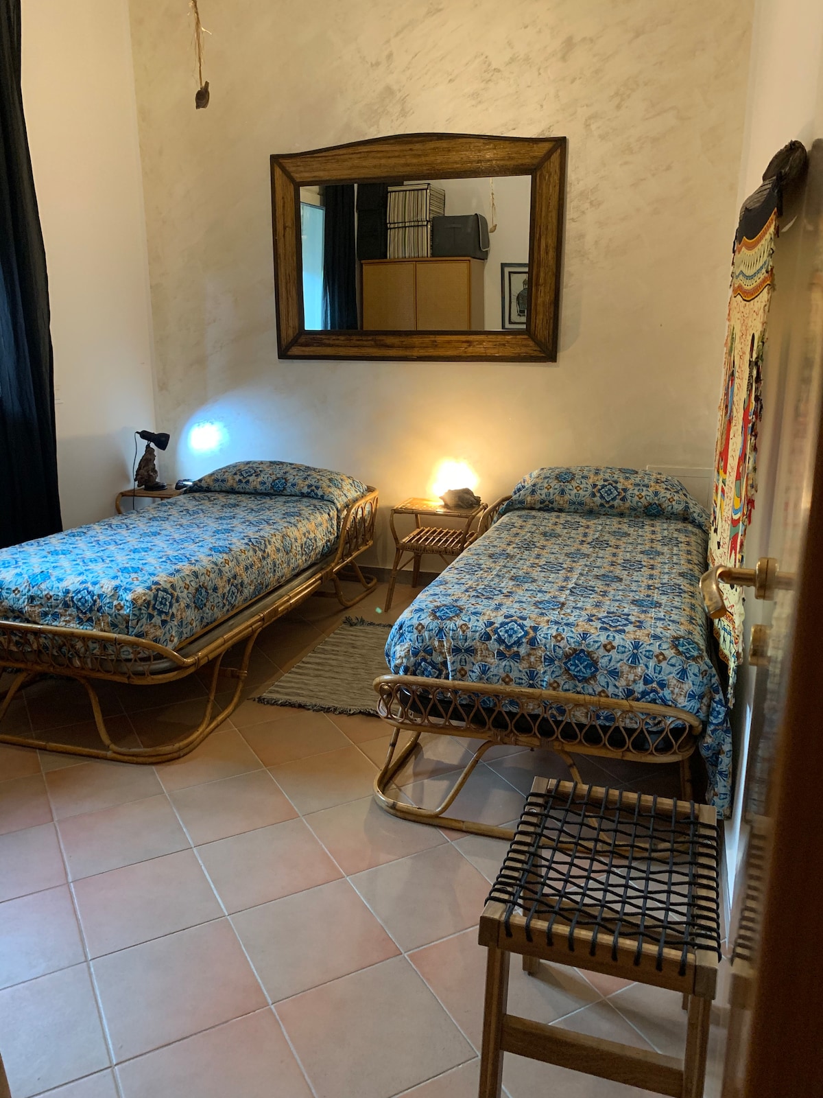The apartment is fully equipped, has direct access to the bay and overlooking the blue Ionian Sea. Wrapped from the terrace surrounded by gardens full of native vegetation, the apartment has a seaview kitchen (through a porthole), a bathroom (with shower and bathtub) and a double bedroom. Enriched by 60s and 70s family furniture, recovered and restored with passion and attention to detail. The strategic position of Stazzo allows you to easily reach points of interest such as Etna (46 minutes), Taormina (33 minutes) and the city of Catania (29 minutes). In the village, just a few minutes walk, there are two small supermarket, a bakery, a butcher, a bar, two restaurants and a pizzeria. On the second Sunday of August, Stazzo celebrates the patron saint, St. John of Nepomuk, whom the Church in the Central Square is dedicated. Throughout the year, the place has a magnificent landscape of sea, and in the summer relax on sunny days, remaining calm and smooth, and the color blue contrasts with the black volcanic cliffs.