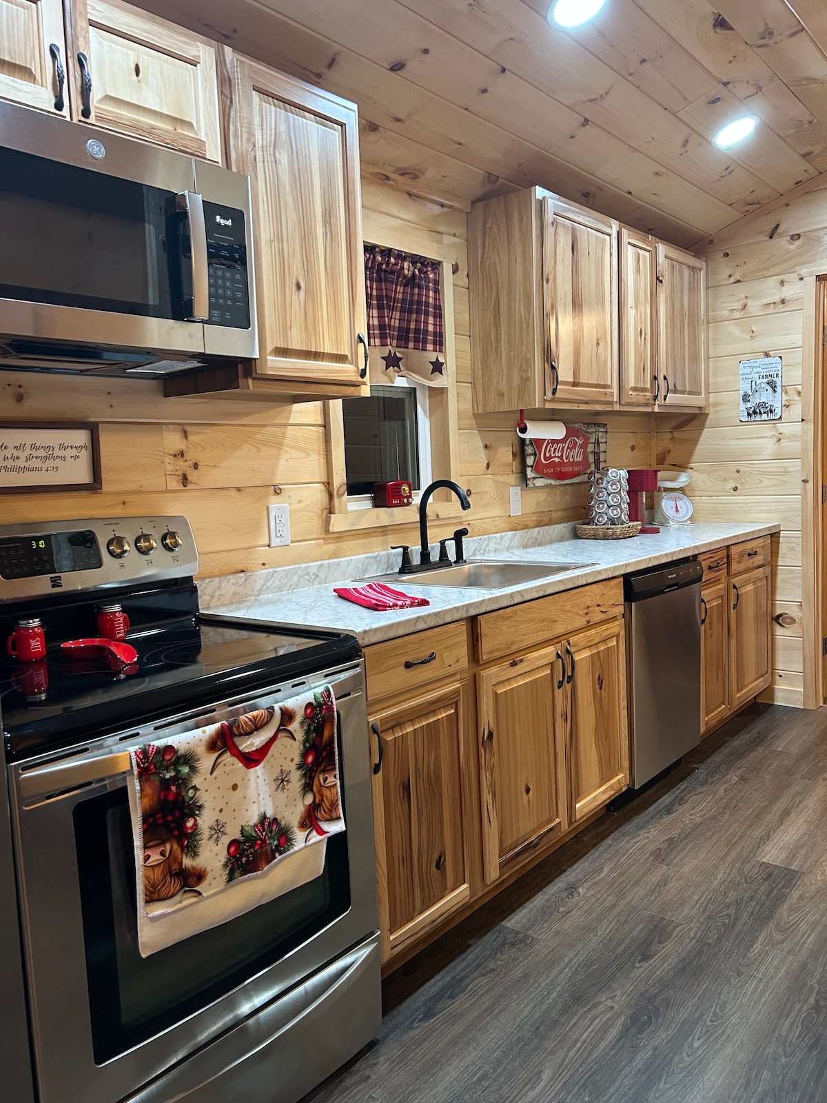 Dőlj hátra, és lazíts ezen a nyugodt, stílusos helyen. Ez a 14x40-es házikó vadonatúj, elülső és hátsó verandával. A veranda a víkendház teljes hossza, ahol 4 hintaszóval üldögélhetsz és pihenhetsz. A hátsó verandán olyan ülőhelyek találhatók, amelyek a termőföldre néznek, és alkalmanként láthatsz legelő szarvasokat a mezőn. A hátsó verandán is van gázgrill. Van egy elkerített privát területünk tűzrakóhellyel és székekkel, hogy élvezhesd a tüzet egy hűvös éjszakán.