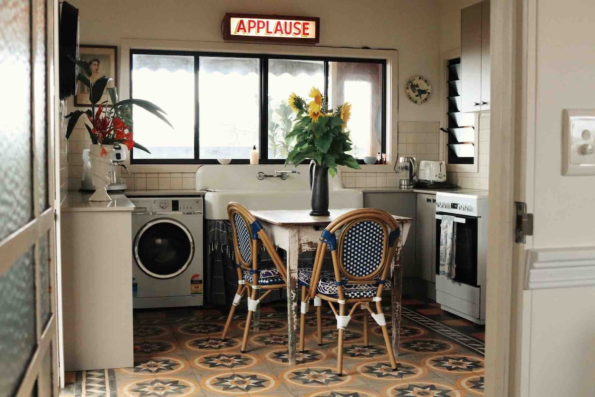 „Ezt az 1957-es tengerparti házat úgy alakították át, hogy a múlt nyári ünnepeinek napsütötte nosztalgiáját idézi fel.„CountryStyle Magazine The Bruns Surf Shack az álomszerű búvóhelyed Brunswick Heads nyugodt szörfvárosában. Képzeld el, hogy a partról sétálsz vissza a szabadtéri grillezőbe, lazítasz, a csillagok alatt zuhanyozol, és a világ egy másik mennyei napja után pihensz a nyugodt lakótérben.