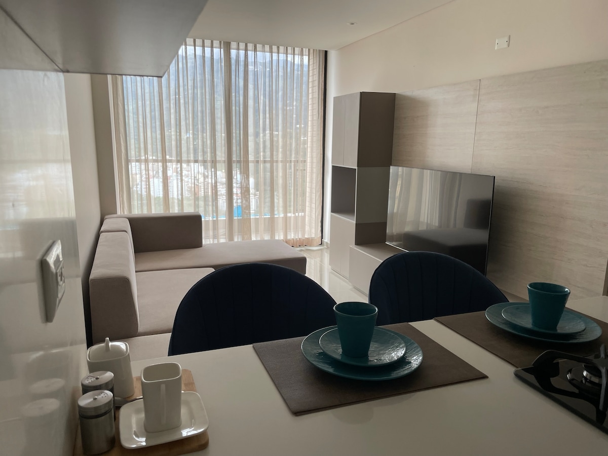 Élvezd a luxusélményt ebben az aranyos lakásban. Közel a nagyvárosi terület bevásárlóközpontjaihoz, a Neomundóhoz és az egészségügyi központokhoz. Van parkolóhelye. Új lakás két hálószobával, két fürdőszobával, nyitott konyhával és kényelmes szobával. Ezen a helyen nagyszerű kilátás nyílik Bucaramangára és Floridablancára. A fő hálószoba légkondicionált, a szobák Smart TV-vel rendelkeznek. Hozzáférhetsz a Fiber Optic Internethez.