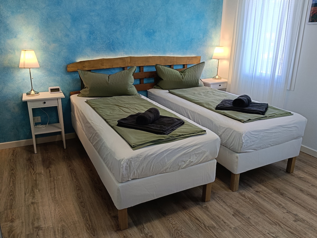Szép lakás légkondicionálóval, mosógéppel és némi külső térrel. 100 méterre egy buszmegállótól és egy bolttól, ahol friss gyümölcsöket és zöldségeket, valamint mindennapi élelmiszereket árulnak. Ha érdekelnek a helyi ételek és borok, tanácsot adhatunk a közeli üzletekkel és farmokkal kapcsolatban. A nagyobb szupermarket 7/7-re kevesebb mint 10 percre (gyalogosan) nyitva tart. A város kastélya (a Prosecco Hillsen) 20 perc sétára található. A közelben lakunk, olaszul beszélünk, de a fiaink segítenek a külföldi vendégek fogadásában.