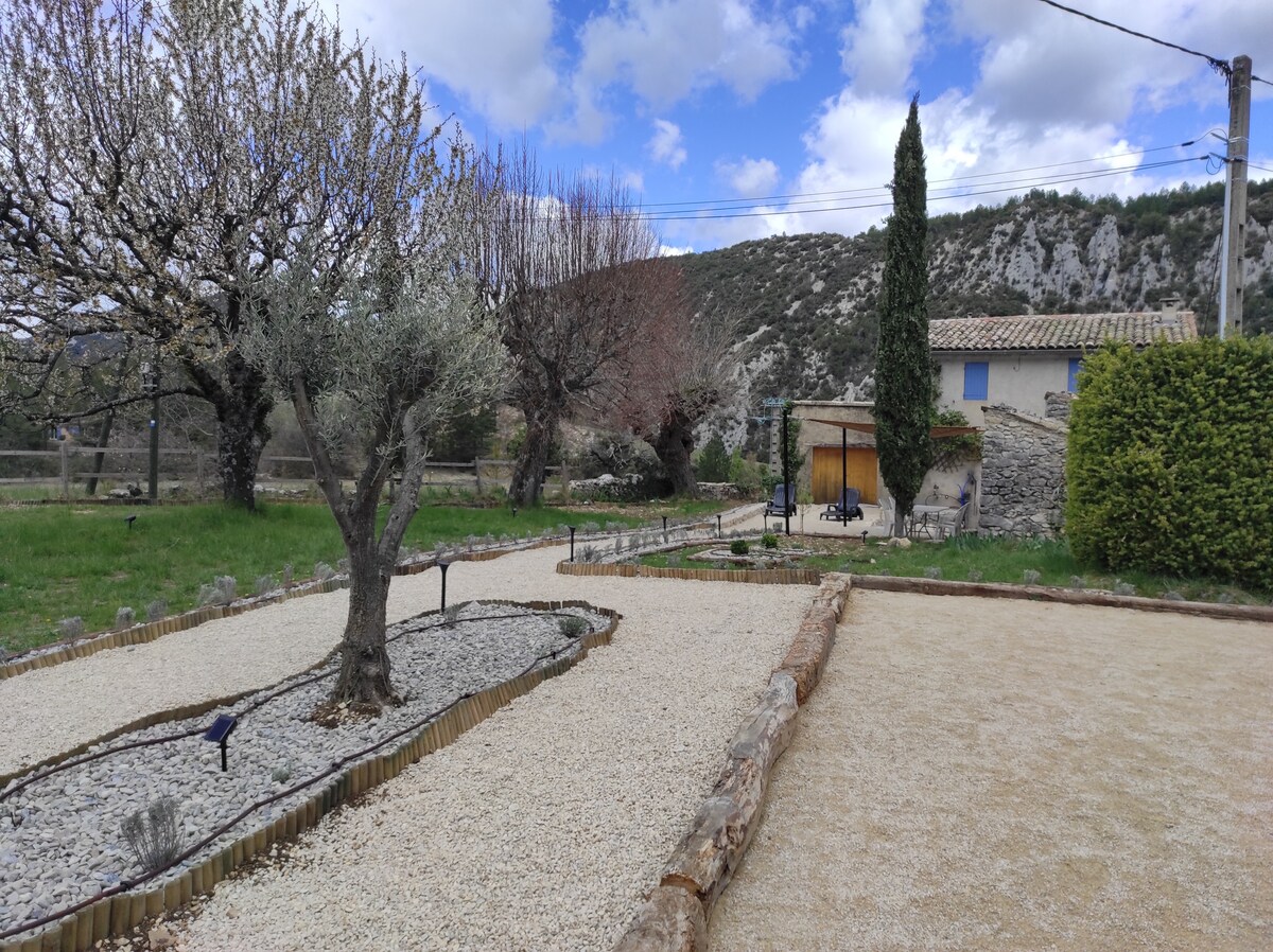 Szép Oasis Lou Garoun ház, a Mont Ventoux lábánál, bájos és hangulatos. Egy kis paradicsom. Soleil. Természet. 2 hálószoba és nagy nappali/ konyha üveg fa tűzhellyel, lépcsőmentes terasz, gyönyörű kert. Függőágyak, napozóágyak. Százéves fák. Nagyon csendes, madárdal és cigányok. Gyönyörű panoráma Montbrun-les-Bain falura, középkori örökség: 1,5 km. Minden kényelmi szolgáltatás. 10 percre vízesések és Toulourenc kristálytiszta folyói, túrázás, hegymászás...