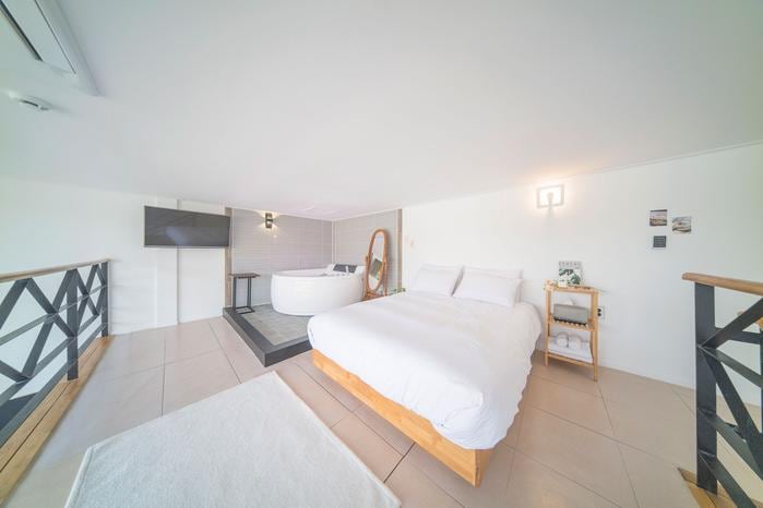 Szia! Onda vagyunk, különböző pihenőterületeket kutatunk és biztosítunk. Remélem, hogy mindenki, aki itt száll meg, jól fogja érezni magát, és jól fogja érezni magát. [Szálláshely bemutatása] Ez egy álomszerű, romantikus panzió a Yeongdeok Ganggu Port Daege Street közelében. [Szoba típusa] Duplex: nappali + konyha + hálószoba A (1 kétszemélyes + 1 egyszemélyes ágy) + duplex hálószoba B (1 kétszemélyes ágy) + 1 mosdó * Az ágyat a lefoglalt személyek számának megfelelően biztosítjuk.