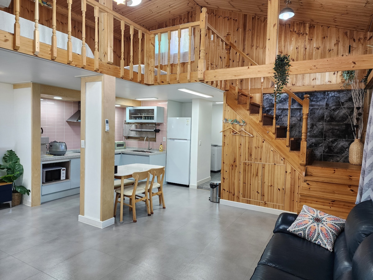 Hiljo a Gyeongju Bomun-tóra néz, és egy dombon található a Hinhung-hegy alatt. Ez a szálláshely egy 230 pyeong családi otthonnal rendelkezik, amely egy nappaliból, két hálószobából, egy fürdőszobából, egy pihenőszobából és egy úszómedencéből áll. Emellett a szabadtéri teraszról és a kertből pihentető menedéket élvezhetsz, miközben a nyitott Bomun turistakomplexumra nyíló panorámát nézed.