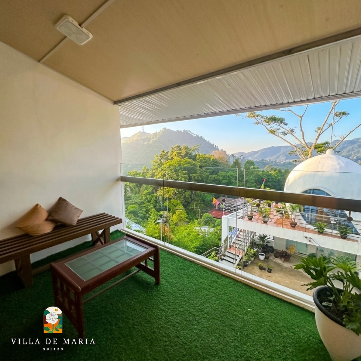 A Villa de Maria Suites Pearl Suiteja egy nyugodt menedék pároknak, amely tökéletes egy békés kiruccanáshoz. 2 vendégnek tervezték, 32 hüvelykes okostévével, ingyenes Wi-Fi-vel és pihentető meleg-hideg zuhanyzóval, teljes piperecikkekkel és hajszárítóval. Élvezd a hűvös hegyi levegőt és a Villa de Maria nyugodt hangulatát. A vendégek a kápolnát, a tavat, a pavilont és a kerteket is használhatják – ideális a csendes reggelekhez, romantikus sétákhoz vagy egyszerűen a természet ölelésében való pihenéshez.