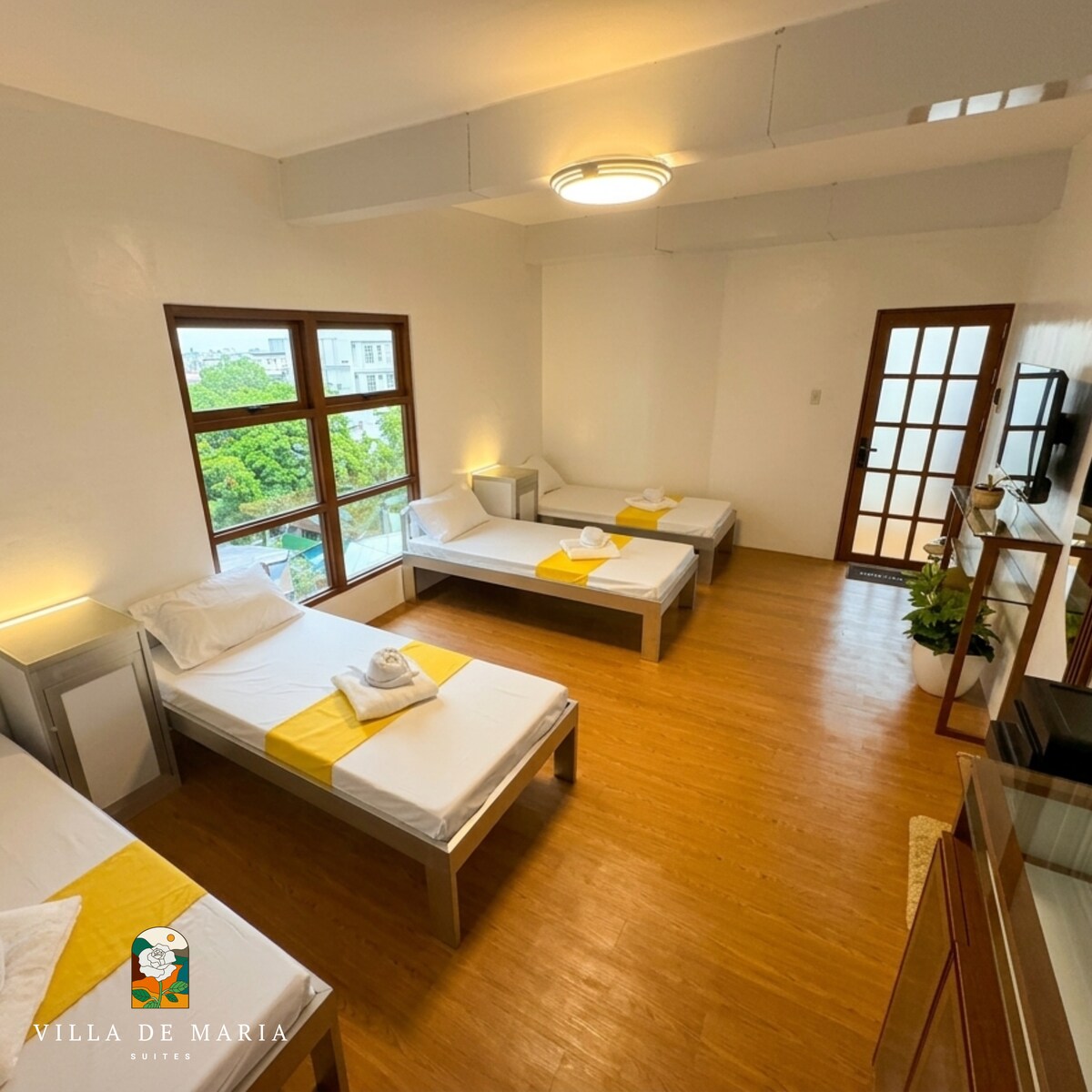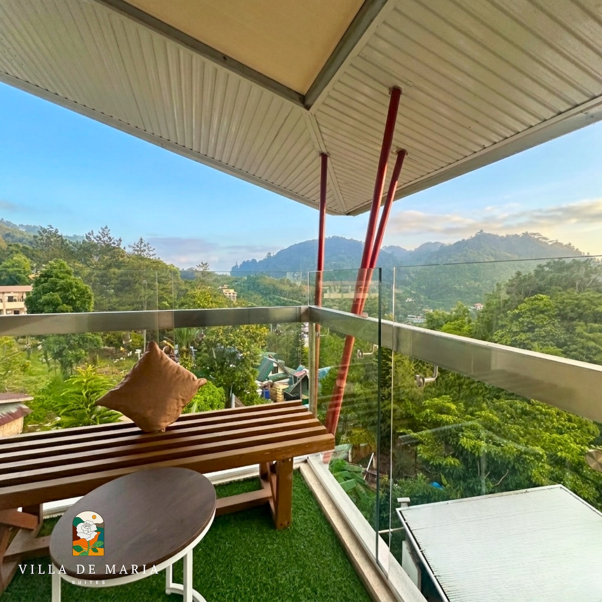 A Villa de Maria Suites Aquamarine lakosztálya egy bájos, kollégiumi stílusú szálláshely, amely ideális 4-5 vendég számára, akik kényelmet és nyugalmat keresnek. Élvezd a 43 hüvelykes okostévét, az ingyenes Wi-Fi-t, a hideg-meleg zuhanyzást, a hajszárítót, a friss törölközőket és a piperecikkeket. A természetesen hűvös esti szellő fokozza a pihentető hegyi légkört. A vendégek a Villa de Maria békés kápolnáját, pavilonját, tavát és kertjét is használhatják – tökéletes a csendes reggelekre, elmélkedésre vagy a természetben töltött pillanatokra.