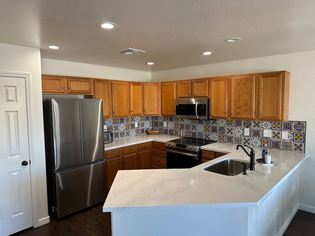 Nyitott koncepció alaprajz a család és a barátok szórakoztatására. Kulcs nélküli belépés a stresszmentes bejutáshoz. Modern és tiszta, sok természetes fénnyel. Újonnan felújított, quarts pultokkal és rozsdamentes acélból készült készülékekkel. Tájékoztatunk, ha egy ismerősödnek foglalsz. Nem fogadunk el harmadik féltől származó foglalásokat. Ez azonnali, visszatérítés nélküli lemondást von maga után. Csak egy rövid, 10 perces sétára a folyótól. A legjobb szálláshely Bullhead Cityben (Tri-Stare környéke). Internetsebesség: 350MPS