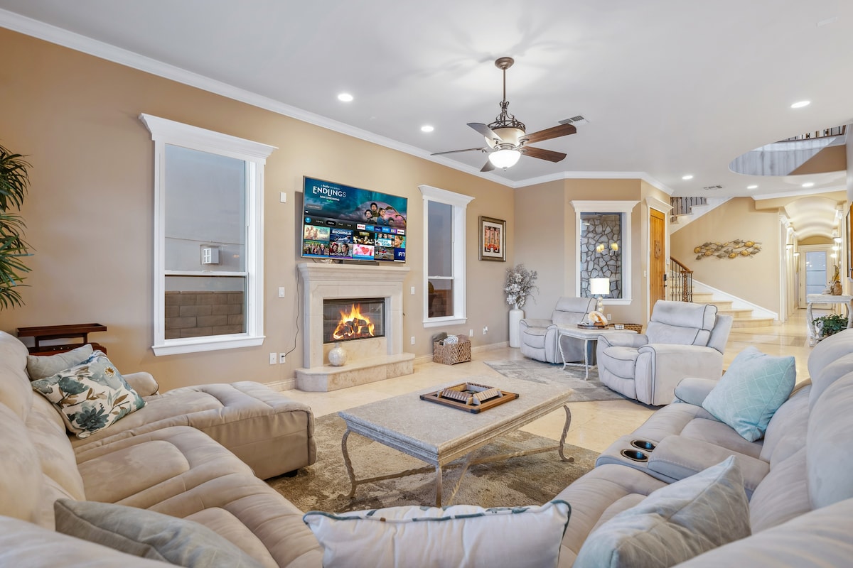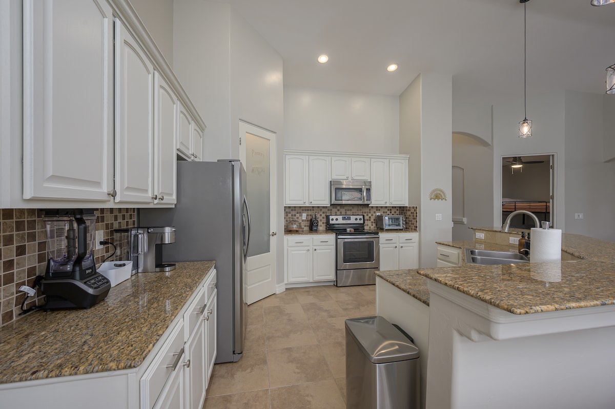Pihenj az egész családdal ezen a békés szálláshelyen. Ez az otthon központi helyen található. Sétatávolságra a vízhez. Parkok és kaszinó a közelben. Open floor plan with central Air , Sleeps up to 7 people (Max) .Gas barbecue outside on those hot days. Ipari jégkészítő. Vadonatúj vízpermetező rendszer a hátsó udvarban, hogy lehűlj a gyönyörű sivatagi éjszakákon. Szupergyors Wi-Fi mesh sebességfokozó rendszer.