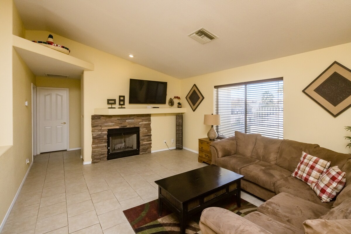 Üdvözlünk a sivatagi oázisunkban. A tökéletes hely az Ön számára!!! Élvezd a napot a tónál, egy délutánt egy borotva vagy egy éjszakát a kaszinóban. Az otthonunk az a hely, ahol élvezheted az arizonai sivatag szépségét. Élvezd a Netflixet a 80 hüvelykes TV-n vagy a társalgóban a röplabda-medencében(3,5 oldal/5 láb közép). Grillezés és fedett terasz alatt. Barátságos környék. Csendes órák: 22:00 - 7:00. Parkolás a kocsifelhajtón és az utcán (nincs garázskapu) oldalsó parkolás a borotvák számára. nem lehet háziállatot hozni, nem LEHET DOHÁNYOZNI! EGYÁLTALÁN nem kell TŰZIJÁTÉK!!