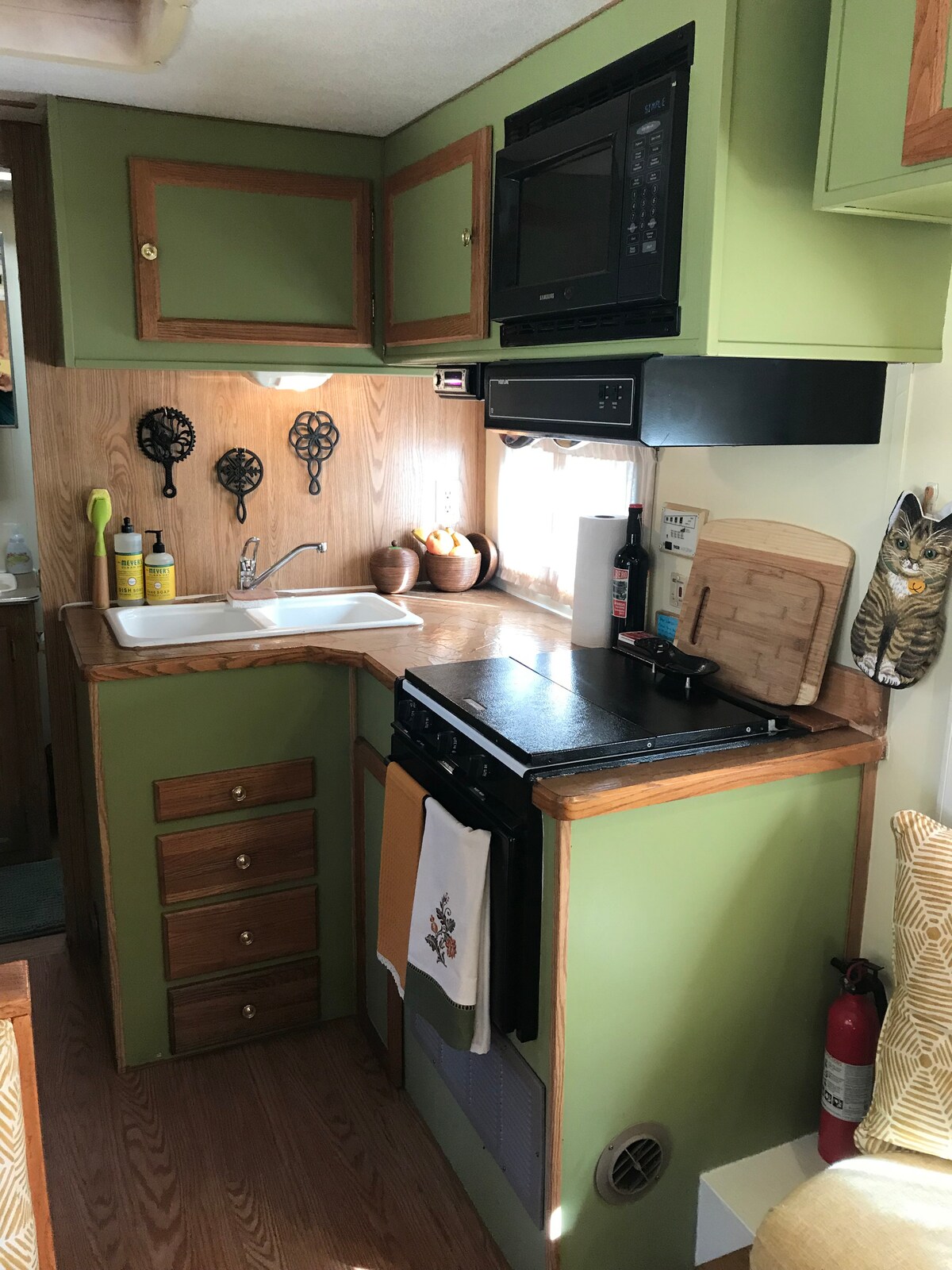 Élvezd a gördülő hegyi farm hangjait, amikor a retró 1975-ös lakókocsinkban szállsz meg. Ez egy egyedi, all inclusive kempinghely. Csak hozd magaddal a ruháidat és az ételeidet, és lazíts a WNC Smoky Mountains negyedében található „minden készen áll” lakókocsinkban. Minifarmunk egy 4,5 hektáros farmon található, az út végén 1950-ben épült eredeti sziklaházzal. Imádtuk a lakóhelyünket 7 éve, és úgy döntöttünk, hogy itt az ideje, hogy megosszuk másokkal Isten teremtésének gyönyörű darabját.