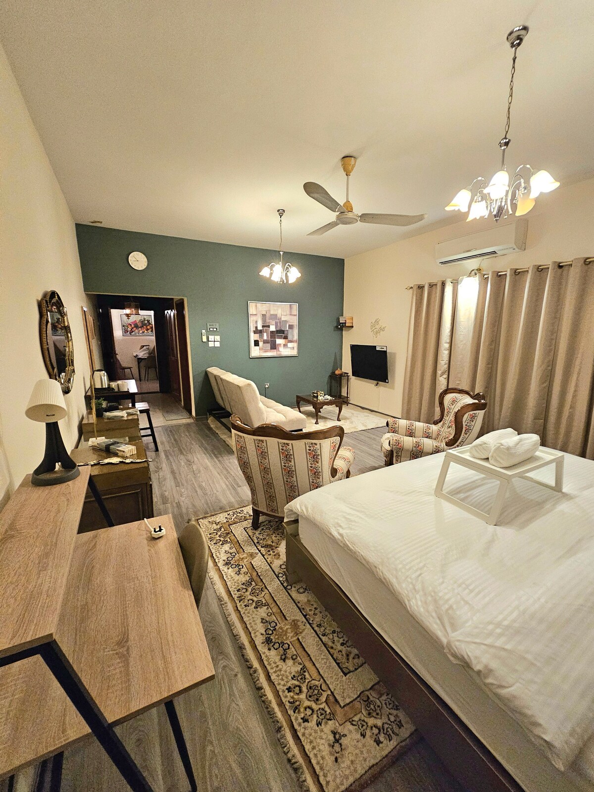 Pihenj ebben a tágas, 3 személyes stúdiószobában, amely fenséges dekorációval rendelkezik 🕍! Ebben a teljesen privát, nem megosztott stúdiószobában szállhat meg, mindössze 15 perc sétára a Max metróállomástól, 5 perc autóútra a Dubai Frame-től és 9 perc autóútra a World Trade Centertől. Sőt, élelmiszerboltok, borbélyok, mecsetek, éttermek és kávézók is vannak sétatávolságra. Ingyenes parkolást, mosodai lehetőséget, kerékpárkölcsönzést és sok minden mást kínálunk. Jöjj el, és lazíts ebben a stúdióparadicsomban 🫶