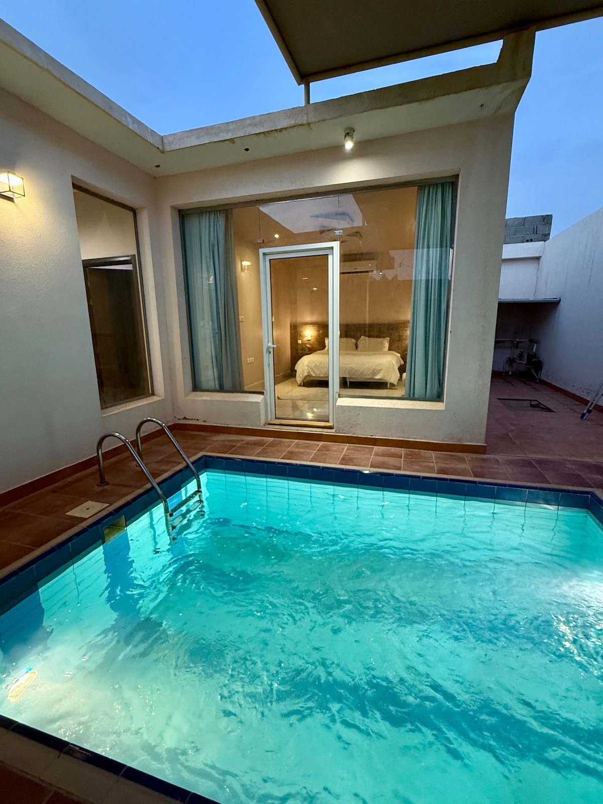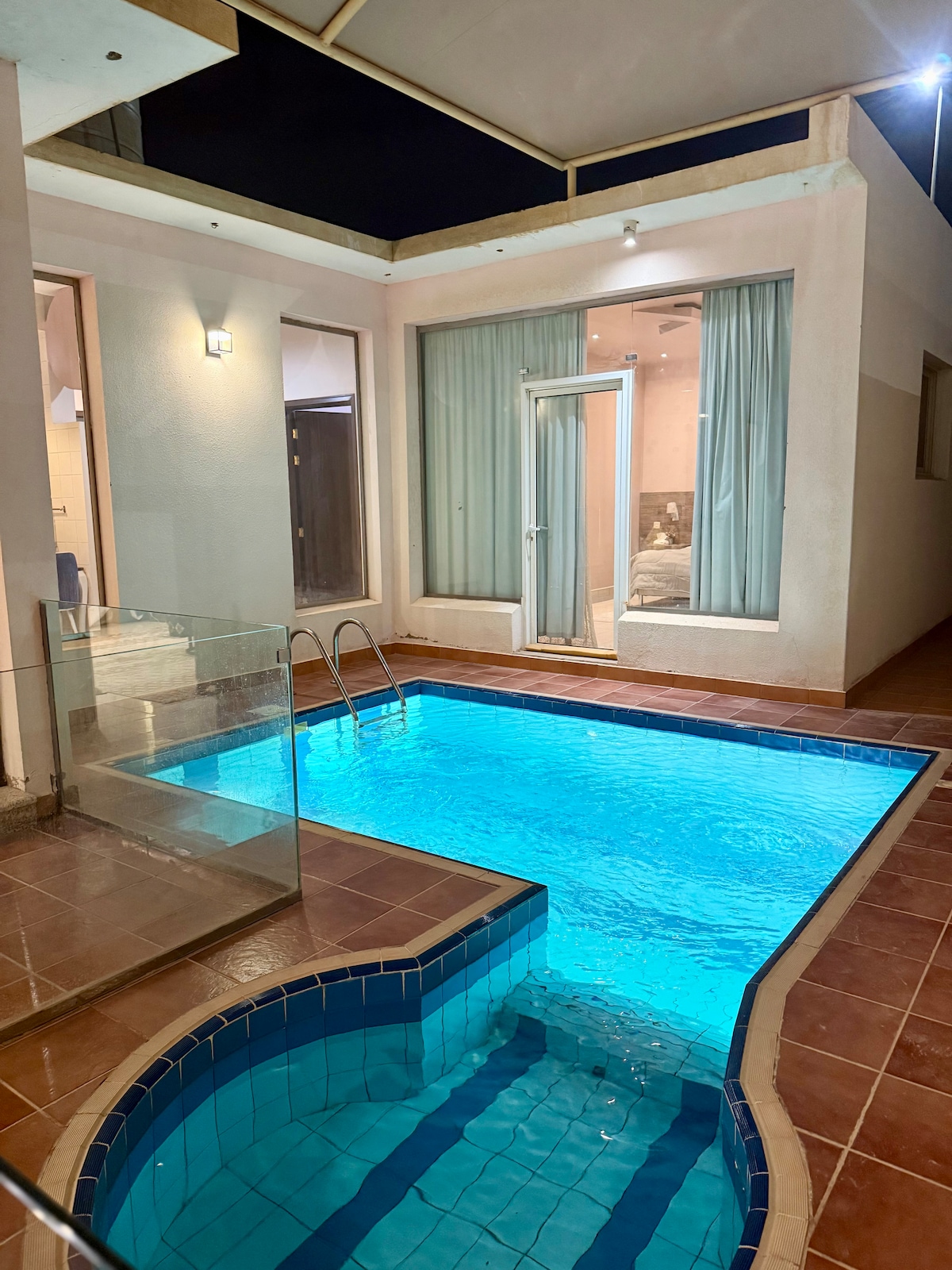 شالية فندقي مصمم ليمنح الضيف تجربة إقامة فاخرة تجمع بين الخصوصية والراحة، ويضم مساحة متكاملة تشمل غرفة نوم أنيقة، صالة جلوس، ودورتين مياه مجهزة، إضافة إلى مسبح خاص دافي تصل درجة الحرارة حتى ٣٧ يوفر أجواء مثالية للاسترخاء وقضاء أوقات مميزة في خصوصية تامة