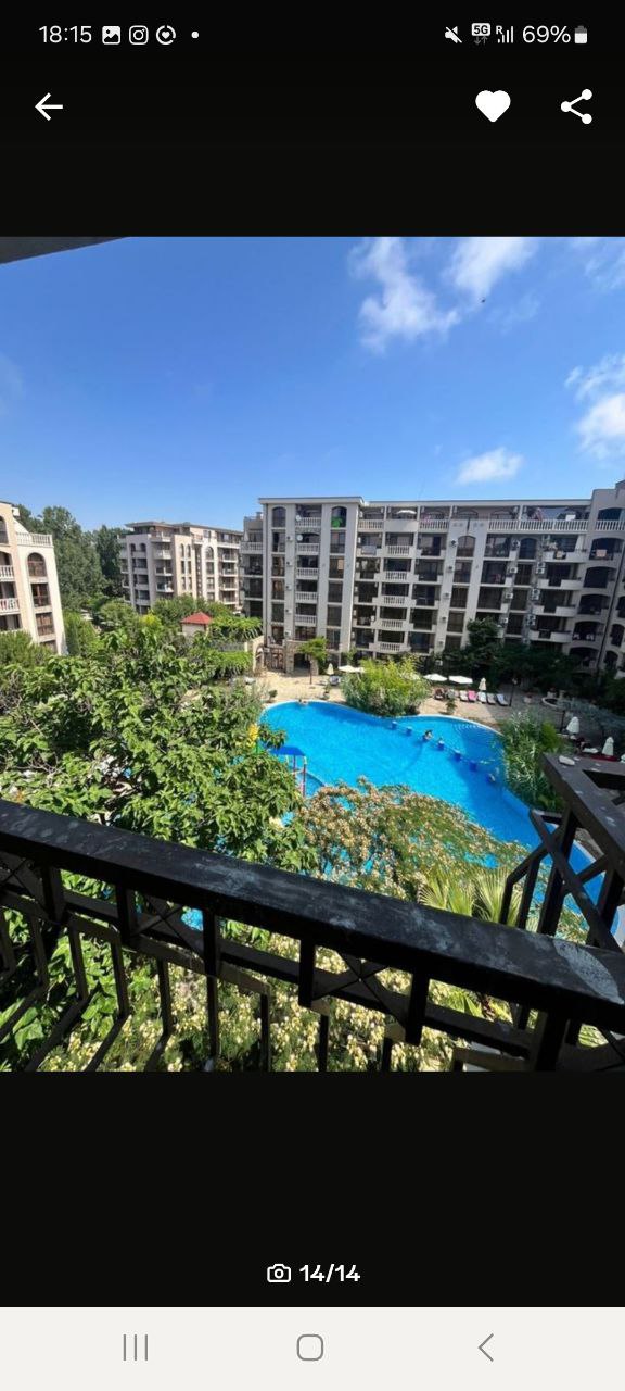 The apartment is situated in the Sunny Beach resort. The beach is only 450m away. Busy district, easy access to main street and the centre with all the communications and places. The popular aquapark is not far. The apartment is fully furnished and equipped, has OWN SEPARATE exit to the swimming pool. The territory is under security. The park zone is nearby, as well as 24/7 supermarket, public transport. To the Nessebar Old town - 10 minutes by bus.