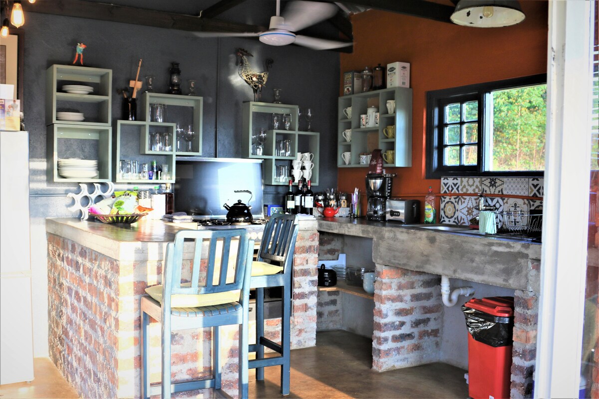 The Guest House is on the Gold diggers pass and has beautiful views of private nature reserve (MACNR). The Spekboom River is a twenty-minute brisk walk from the Guest House. The first thing you’ll notice about the guesthouse is it’s spacious open plan kitchen, dining room through to the living room. There are three bedrooms. The master bedroom is equipped with a queen size bed and en-suite bathroom. The second bedroom have a double bed and the third bedroom two single beds.