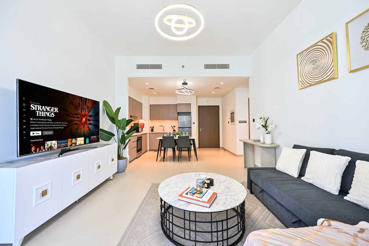 Tapasztald meg a hollywoodi ihletésű luxust a Paramount Midtown 59. emeletén. Ez az egy hálószobás lakás az 5 csillagos kifinomultság és az otthoni kényelem keveréke, és padlótól mennyezetig terjedő kilátást nyújt a Burdzs Kalífára. Ébredj a napfelkeltére a nappaliban, és töltsd az estéket a 64. emeleti végtelenített medencénél – a Business Bay egyik legmagasabb pontján –, hogy tanúja lehess a Dubai látképét eluraló naplementének. Tökéletes romantikus kiruccanásokhoz vagy üzleti utakhoz. Luxusélmény a legjobb formájában.