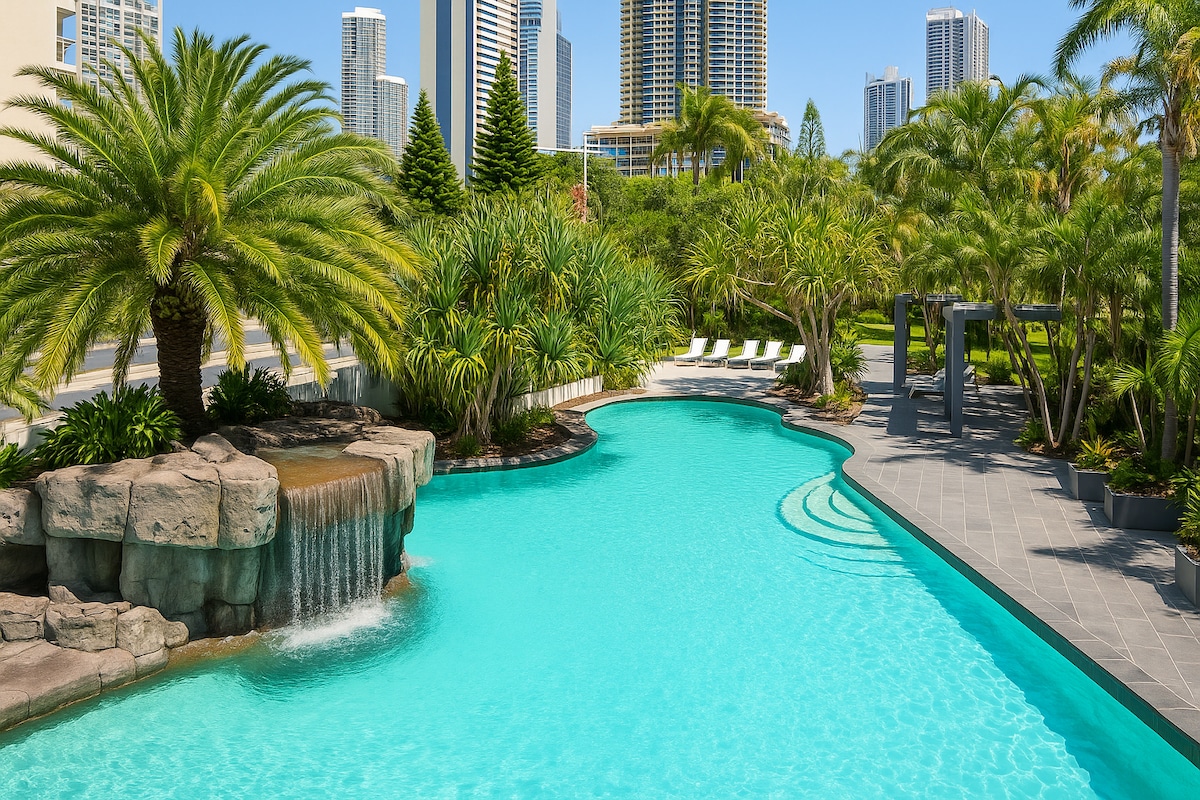 Surfing Paradise Center · Tengerparti üdülőapartman | Két hálószoba és két fürdőszoba | Medence és móló, sétatávolságra a strandtól