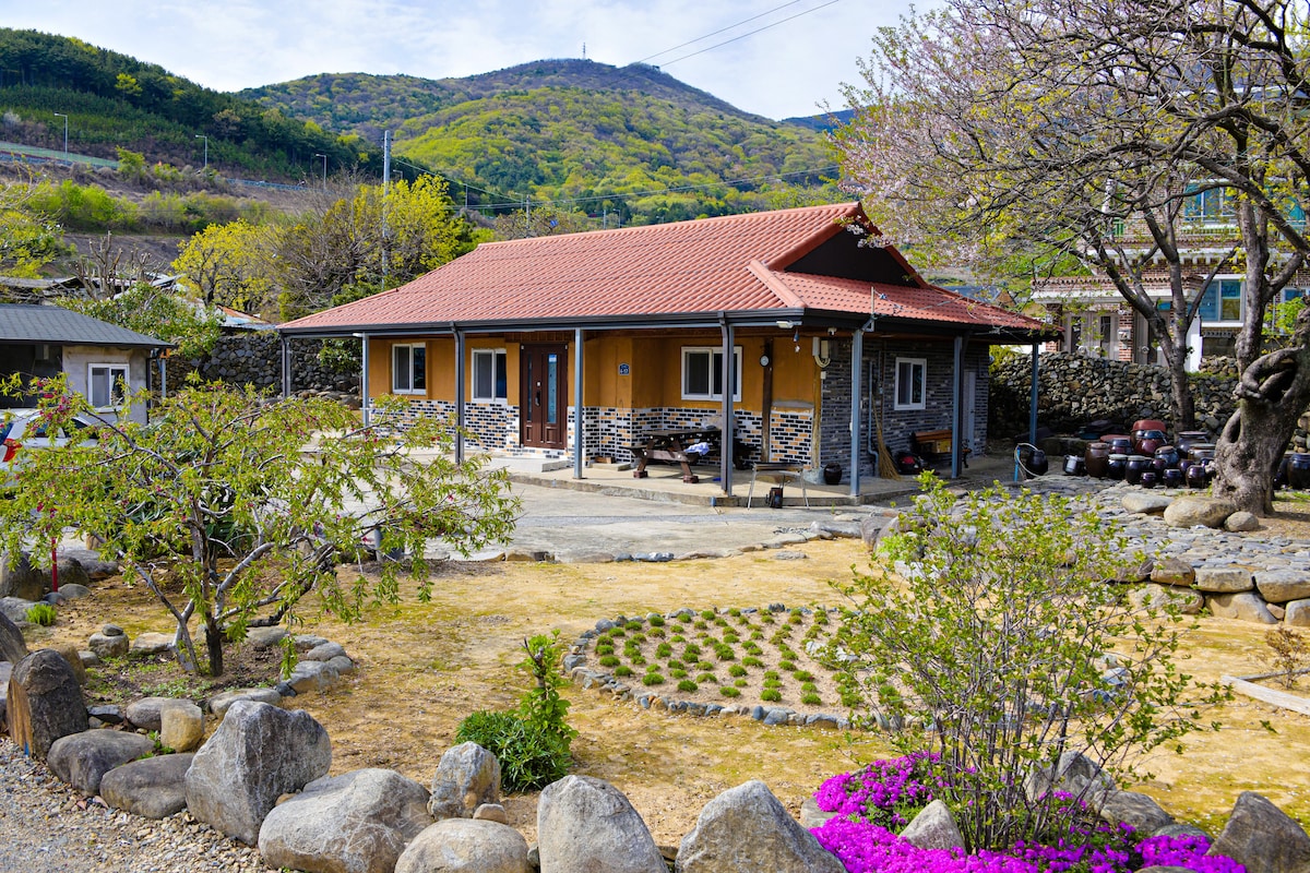 Ulsan 10 Gyeongsan. Ulsan Arboretum under Daewon Mountain. Ulsan Healing Forest és 10 perc séta Villaszerű házikó a falu végén. 600 pyeongból álló tágas kert Saját rejtett helyünk, ahová senki sem jön Tavasz. Nyár. Ősz. Tél Kis esküvők, workshopok és családi összejövetelek Tavasszal családi esemény szülőkkel egy nagy cseresznyefa alatt Nyáron, eső után, a völgyi medence jó mélysége 1 m A tágas füvön, ahol éjszaka összesen egy csillagot láthatsz Ősszel a szöcskék és a nyugodt szellők hangja hallatszik a szöcskék hangja alatt, és a nyugodt szellő az a hely, ahol akár egy kis koncertet is tarthatsz. Télen olyan, mint egy kávézó Gyönyörű napfény este, pihentető esték, csillagnéző égbolt. Boldog leszel.♡