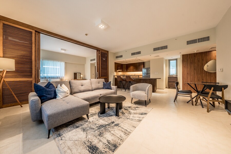 Üdvözlünk a L'Appartementben, egy luxus három hálószobás lakásban Dubai belvárosában. Ez a tágas szálláshely kifinomult, kortárs párizsi stílusban épült, és ötcsillagos szállodai hangulatot áraszt. Minden hálószobához saját fürdőszoba és külön tévé tartozik a magánélet védelme érdekében. Élvezd az olyan kényelmi szolgáltatásokat, mint az edzőterem, a szauna és a medence, valamint a nonstop biztonsági szolgálat. Szupermarketek, borbélyüzlet, női szalonok és kávézók vannak a közelben. A Dubai Mall mindössze öt percre van, így a L'Appartement ideális rövid és hosszú távú foglalásokhoz is.