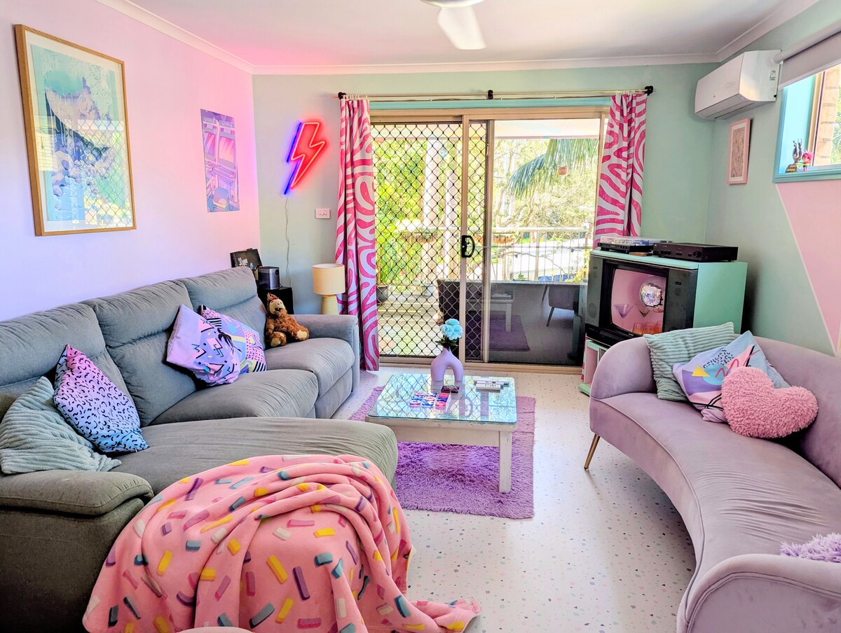 Incredible location and the most unique, artistic, colourful & happy home in Byron Bay! Brand new kitchen, air conditioning, new bathroom, new flooring, outdoor yoga/workout space, landscaped garden and infrared sauna. You'll find it hard to leave the Pastel Palace but walk 10 min and you're at beautiful Tallow beach. Walk 15-20min and you're right in town. The house is situated right between 2 of Byron Bay's best cafes- General Store and Roadhouse. Fast wifi, Off-street parking for 1 car