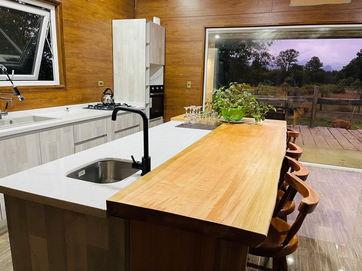 Somos Cabañas Vistas Pucon. A kunyhó saját vízmelegítővel rendelkezik, amely 17:00 és 21:00 óra között automatikusan ideális hőmérsékletre (38 °C/100 °F) melegíti a vizet. AZ ÁR TARTALMAZZA. Emellett központi légkondicionálóval és Wi-Fi-vel is rendelkezik. Gyönyörű természeti környezetben vagyunk, kiváltságos kilátással a tóra, a hegyekre, a Pucón-völgyre és éjszaka a gyönyörű csillagos égre. A Cabañas Vistas Pucón 7 km-re (8-10 perc) található Pucón központjától, és nagyon közel van más érdekes és vonzó helyekhez.