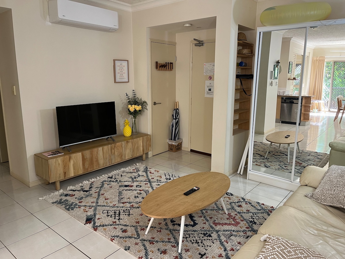 Beautiful tropical apartment right across the road from Trinity Beach. You have sea views and can hear the waves crashing in your bedroom. This holiday apartment is in the Coral Sands Resort, its a modern, fully self contained apartment, with privacy and an incredible outlook. Prime location within walking distance to restaurants and cafes. Perfect place to sit back and relax. Essential Pantry items, wide range of tea and plunger coffee Netflix, unlimited WIFI.