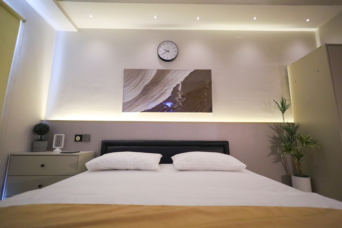Hangulatos és hívogató szállás kilátással a városra egy kiváló helyen! Szállj meg ebben a kényelmes 2Br lakásban a 19. emeleten, amely ideális pároknak, családoknak, utazóknak vagy üzleti utazóknak. Kényelmes helyen, a Mall of Indonesia mellett található, ahol vacsorázhatsz, vásárolhatsz vagy filmezhetsz. • Közös úszómedence a kikapcsolódáshoz • Teljesen felszerelt konyha otthoni főzéshez • Ingyenes Wi-Fi és TV-kábel a szórakozáshoz • Ingyenes ivóvíz és alapvető kellékek Élvezd a kellemes időtöltést nagyszerű kiszolgálással, fantasztikus áron!
