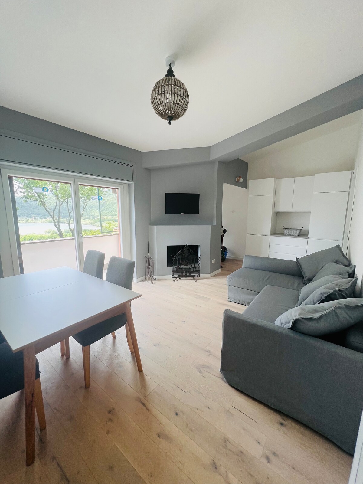 Gyönyörű, 95 négyzetméteres lakás a falu központjában, 20 méterre a Bracciano-tótól és két lépésre a történelmi központtól és a városi tértől, a Rómától való távolság autóval mindössze 45 perc. Éttermekkel, pizzériákkal, bárokkal és szupermarketekkel körülvéve. Az apartman két hálószobából, egy fürdőszobából, egy konyhából és két nagy erkélyből áll, amelyek közül az egyik a tóra néz, a másik pedig a történelmi központ és a Rocca Orsini romjai felé. Az épület harmadik emeletén található, és lélegzetelállító kilátást nyújt.