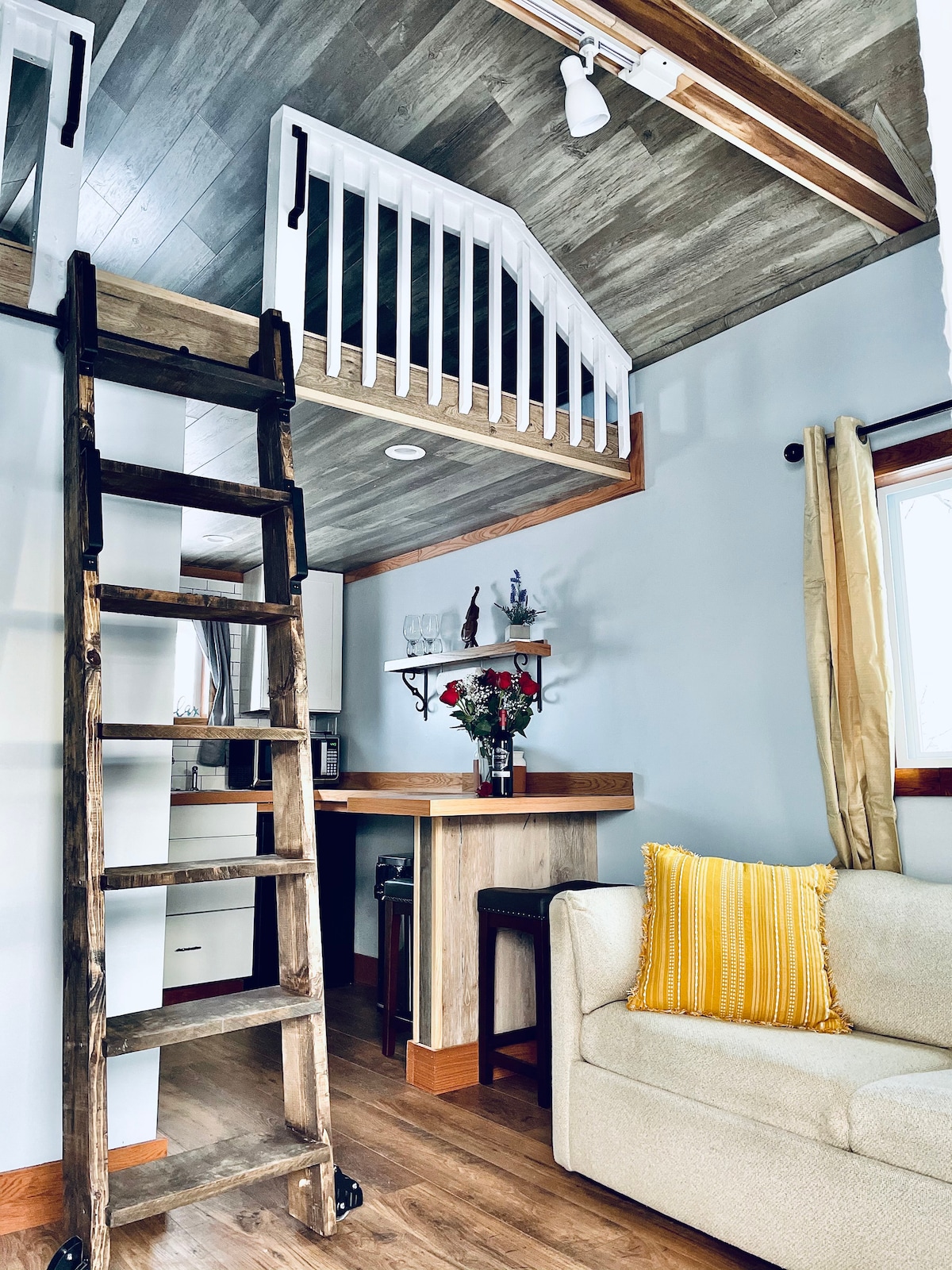 Központi elhelyezkedésű privát 200 négyzetláb Miniház tetőtéri hálószobával, minihűtővel, mosdóval és fürdőszobával. Ez a vendégház egy másik Airbnb-otthon területén található, de saját kocsifelhajtóval rendelkezik. Ez a miniház 2 főnek a legkényelmesebb. Mivel ez egy miniház, a tetőtéri hálószobába fel kell mászni egy létrán. Központi helyen, síeléshez, motorosszánkóhoz, terepjáróhoz, túraútvonalakhoz, tavakhoz és folyókhoz! Privát udvar tűzrakóhellyel (némi tűzifa is jár hozzá). A háziállatokat díj ellenében fogadjuk el.