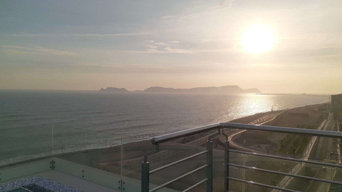 Hangulatos stúdió közvetlenül a San Miguel sétánnyal és a Media Luna Parkkal szemben! Sétálj az óceán partján, pihenj, és élvezd a gyors hozzáférést Costa Verde, Miraflores, Barranco, Arena 1, Costa 21 és a repülőtér közelében. Nonstop biztonság, gyors Wi-Fi és okostévé vár rád Netflix, Disney+, HBO, Prime Video és YouTube Premium szolgáltatással. Tökéletes azoknak az utazóknak, akik kényelmet, nagyszerű kilátást és nyugodt tengerparti szállást keresnek.