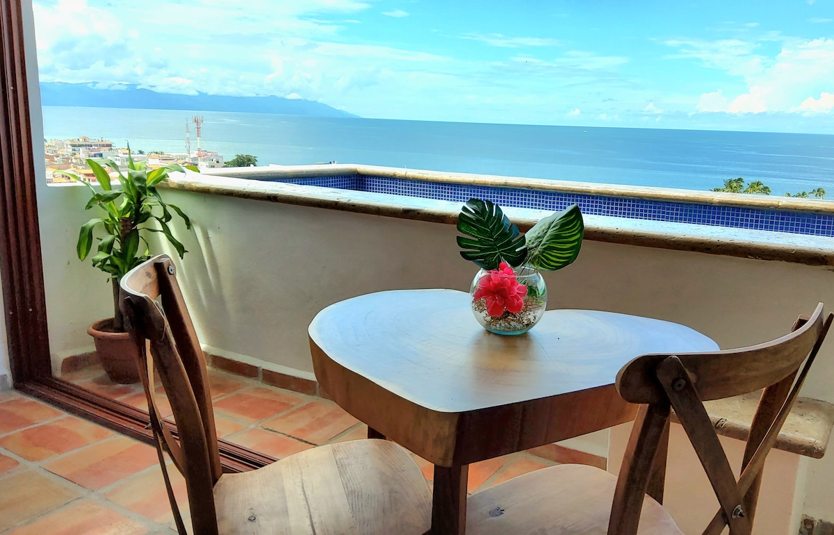 Saját PRIVÁT MEDENCE lélegzetelállító panorámás óceánkilátással ez a szuper aranyos és kényelmes loft a LEGLENYŰGÖZŐBB ÓCEÁN KILÁTÁSSAL rendelkezik Puerto Vallartában, hogy élvezhesd a felejthetetlen NAPLEMENTÉT és az éjszakai tűzijátékot Tényleg nincs még egy ilyen hely a városban, egy igazán egyedi és bájos loft, ahol megszállhatsz, minden kényelemmel fel van szerelve, és csak pár lépésre van az éttermektől, művészeti galériáktól, városi látnivalóktól és még sok minden mástól. Egyedülálló hely egy romantikus kiruccanáshoz, vagy ha csak egy csodálatos naplementét szeretnél látni