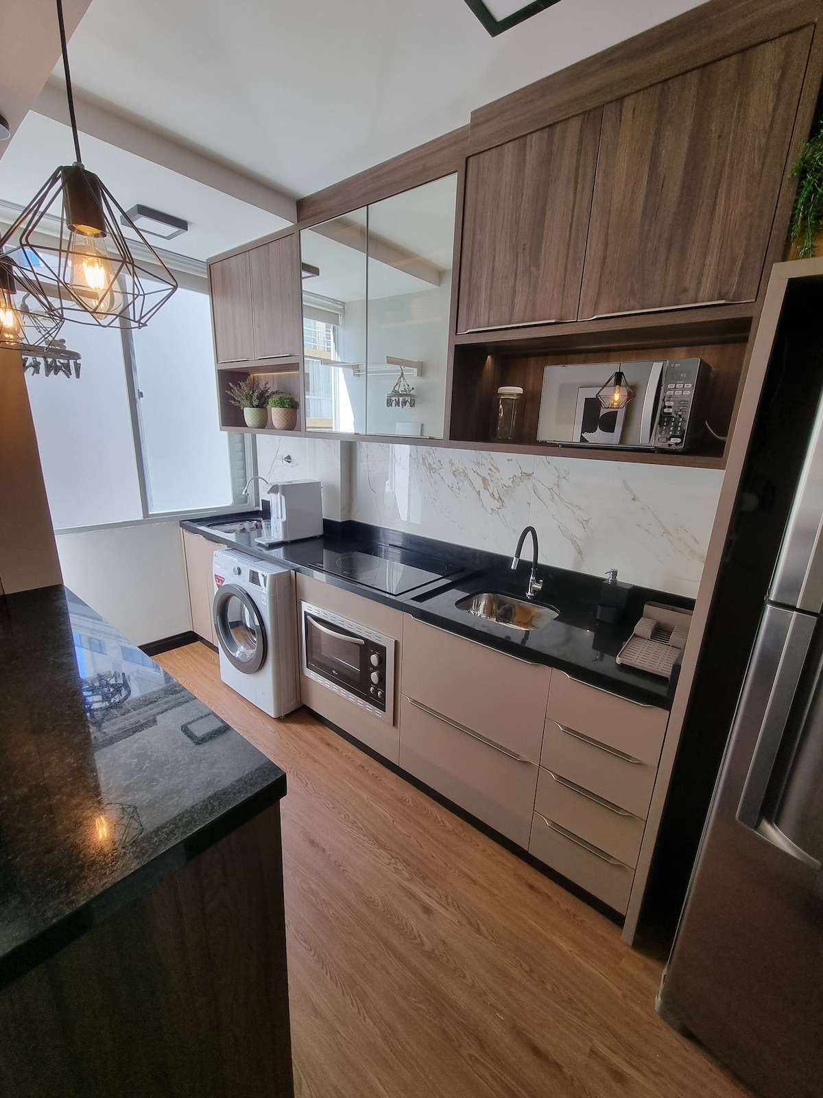 Lounge Apartment, located in Brava Beach and 10 minutes from Balneário Camboriú. The location is perfect. Only 5 blocks from Beach. Close all parties and restaurants. Condo with complete infra, Pool, Gym, Steam and 4 Barbecues. The apartment has Mountain-facing Jacuzzi with hydro and chromotherapy. Ideal for relaxing or take a romantic time. It has 58 'smart TV in the living room and 40' in the bedroom. Full kitchen. Machine washes and dries. You will love this place.