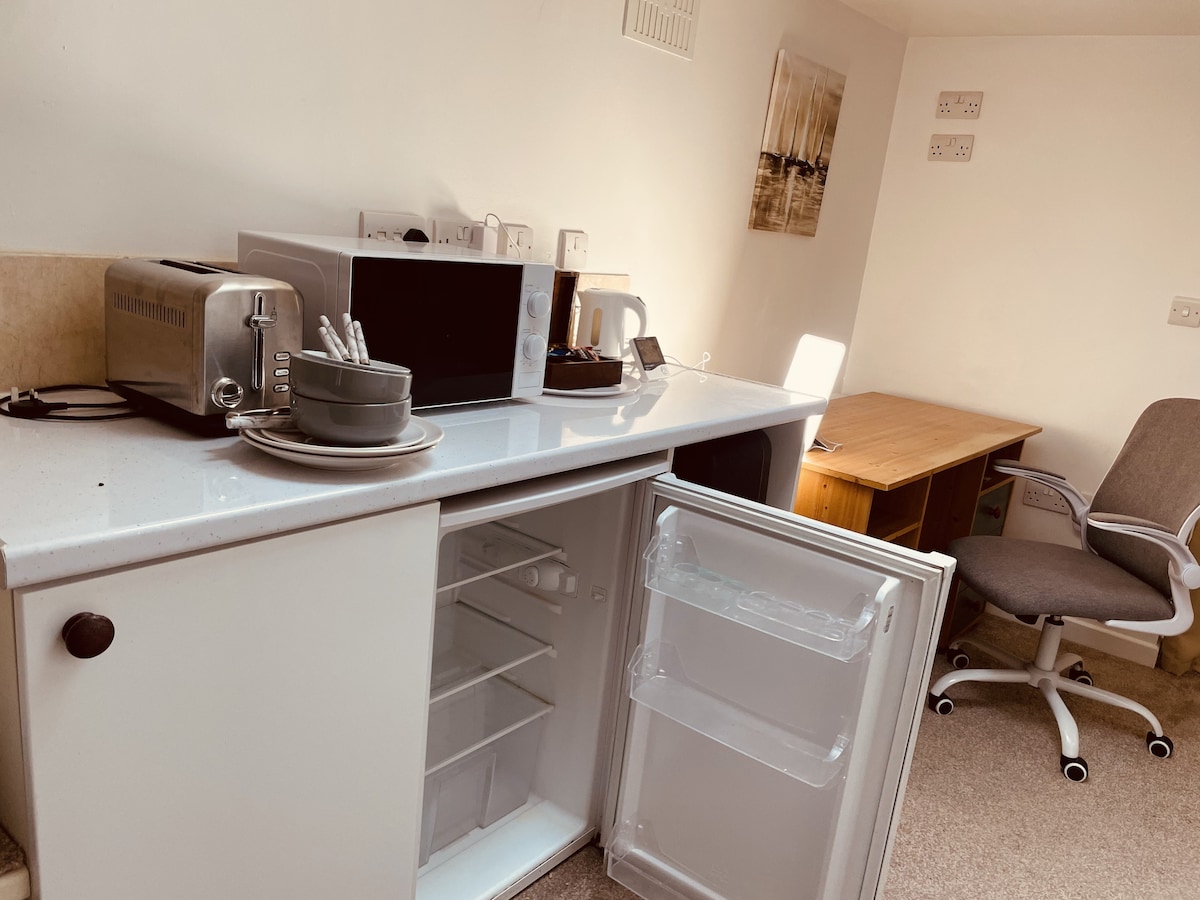 Vendégstúdiónk világos, kényelmes hely, saját bejárattal, konyhával, hálószobával, saját fürdőszobával és vendégterasszal. A Great Ouse folyón található St. Neots történelmi piacvárosában vagyunk. Van egy szép, nagy parkunk az út túloldalán - gyönyörű minden évszakban. - Ideális kiindulópont Cambridge meglátogatásához (autóval vagy busszal). - Vasútállomás mindössze 5-10 perc sétára (London 50-60m, Peterborough, 20m) - Városközpont 20-30 méteres séta a gyönyörű parkon keresztül