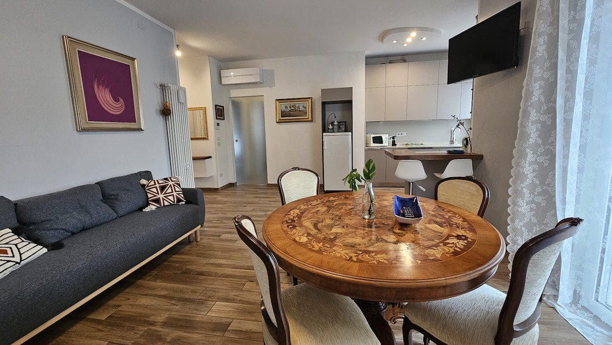 Modern és hangulatos lakásunk stratégiai helyen található: 1,7 km-re a veronai repülőtértől, 200 méterre a Dossobuono vasútállomástól és mindössze 6 km-re a vásártól. 4 ággyal, zuhanyzóval és hajszárítóval rendelkező fürdőszobával, valamint felszerelt konyhával rendelkezik. A következőket találod: 🚗 Ingyenes parkolás az ingatlan előtt ❄️ Légkondicionálás minden helyiségben 📺 2 Okostévé 🔒 Biztonságos 💻 Ideális íróasztal az intelligens munkavégzéshez Gyors 📶 Wi-Fi ☕️ Kávéfőző és vízforraló