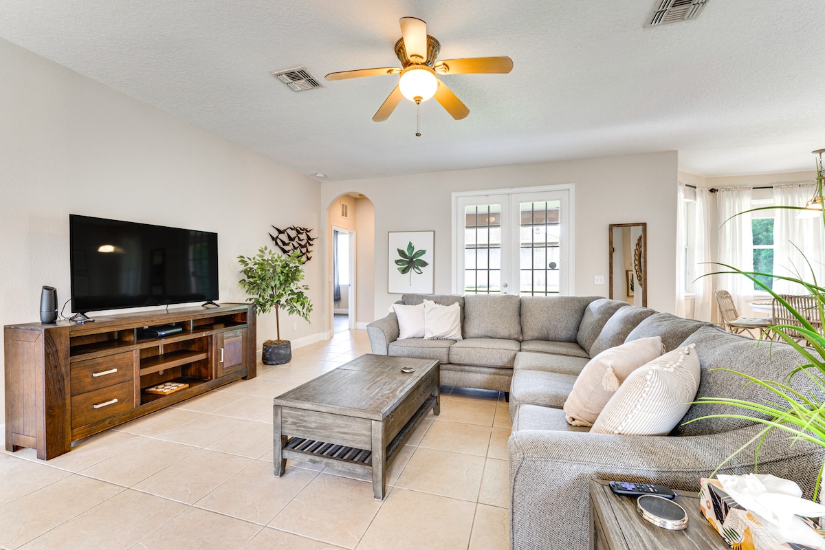 This sunny single-story home has 4 beautiful bedrooms, 2 full bathrooms, new AC system, fully stocked kitchen, and private screened freshwater pool. Perfect for families or groups, it accommodates up to 8 guests. Just minutes from DisneyWorld, Universal Studios, SeaWorld, Legoland, and Orlando’s top attractions. Conveniently located close to restaurants and shopping, this non-smoking house is nestled in a peaceful and secure resort, offering all the comforts of a "home away from home" vacation.