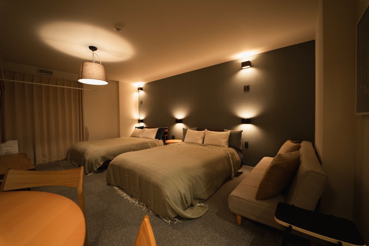 【Tomariehotel】ダブルベッド3台+シングルベッド1台 キッチン・洗濯機付 禁煙