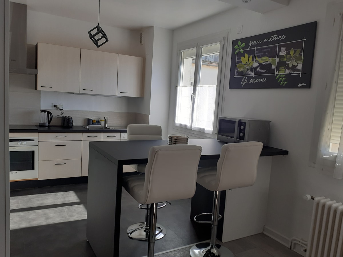 Voici le petit frère de l’appartement « bienvenue chez vous! » après de long mois de travaux il est enfin disponible ! Appartement en rez de chaussée avec entrée indépendante. Vous y trouverez tout le confort moderne, cuisine équipée, internet, tv 138 cm dans le salon, machine à laver, écran cinéma de 200 cm avec Netflix, Amazon prime dans la chambre, un espace extérieur privé (en cours d’aménagement), une place de parking le tout à 15 min À PIEDS du plein centre ville ! WIFI