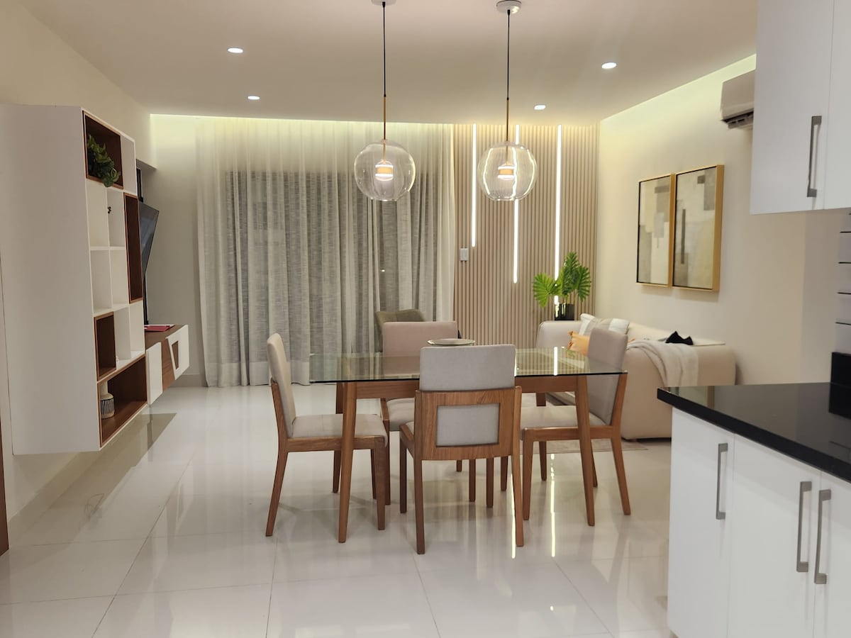 Üdv a Santiago-i kiruccanásodon Élvezd a kényelmes, modern és biztonságos szállást Cibao szívében. Lakásunkban 3 hálószoba, nappali, felszerelt konyha, étkező, mosókonyha, saját erkély található, ahol élvezheted a trópusi éghajlatot és a közös területet medencével. Ideális elhelyezkedés Santiagóban, közel a Cibao repülőtérhez, az Agora Mall bevásárlóközponthoz, a Monumenthez, éttermekhez és turisztikai helyekhez. 🛜 Wi-Fi, 3 légkondicionáló és 4 tévé 📺, hogy otthon érezd magad.
