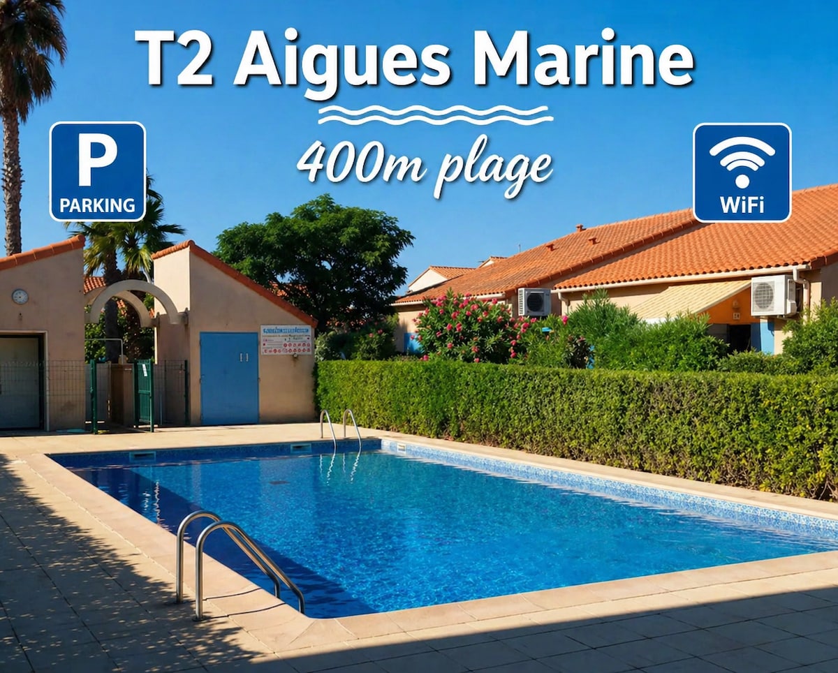 SuperbeT2-Piscine-400m Plage-Parking privé-3*