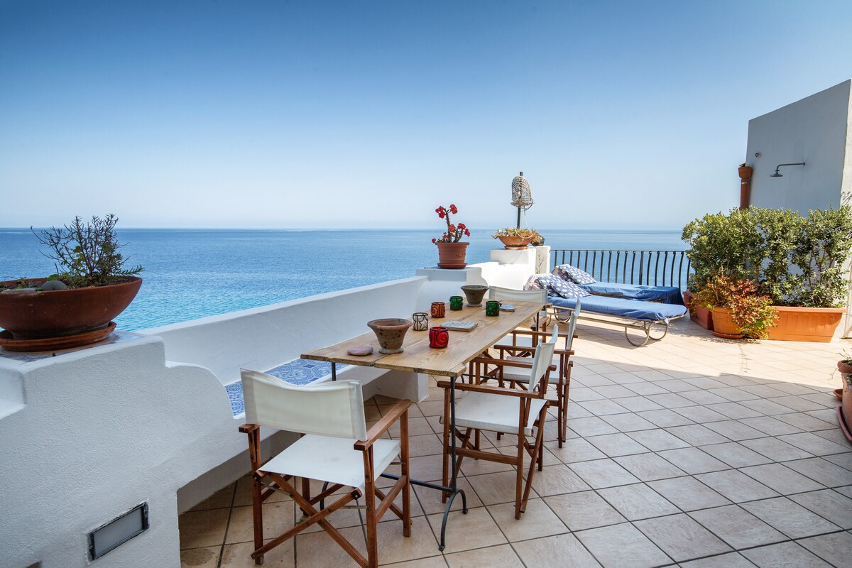 L appartamento facente parte della casa dove vive la sola proprietaria composto da una grande camera con un letto matrimoniale divisibile,aria condizionata, un antibagno, un bagno completo con una doccia, una cucina attrezzata di tutto il necessario, divano e. televisione. Inoltre un grande terrazzo a picco sul mare con una parte coperta per pranzo e relax ed una meravigliosa vista su panarea e stromboli Una scala privata porta alla bellissima baietta sottostante con un mare meraviglioso.