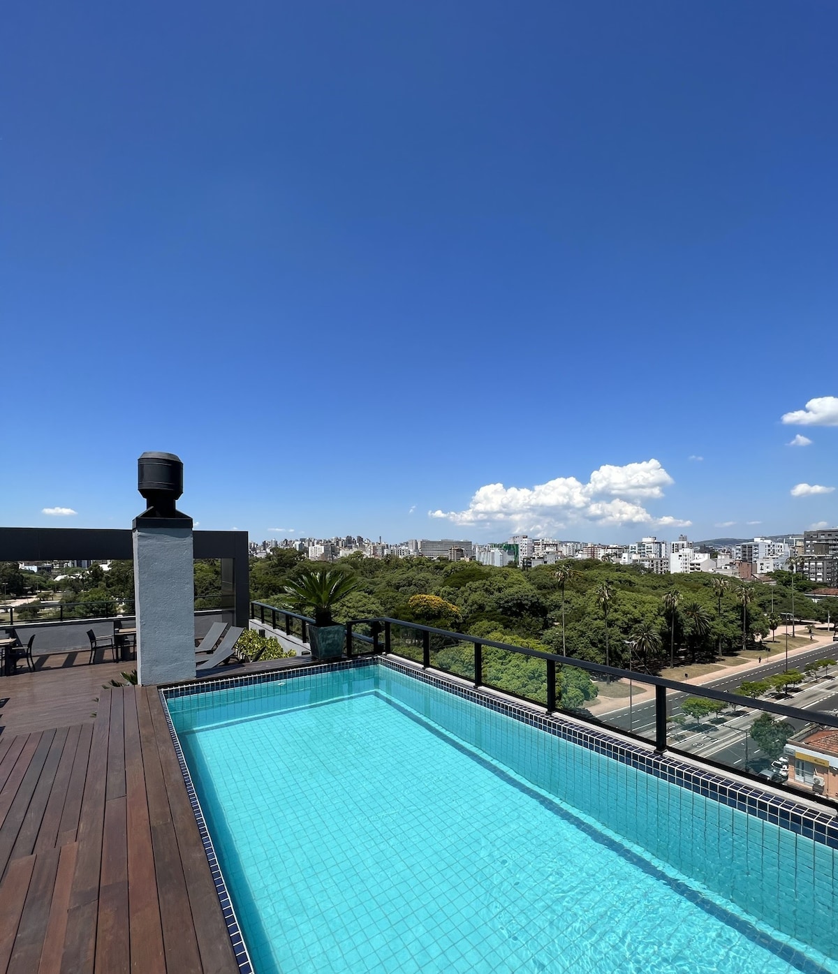 Stúdió parkra néző kilátással és automatizálással/Alexa. Zárt garázs, konyha alapvető kellékekkel és ágyneművel/fürdőlepedővel. Központi helyen található, tetőterasz medencével, edzőteremmel és közös munkaterülettel. A Parque da Redenção néhány méterre, Organic Fair és Brique hétvégénként, Refúgio do Lago gasztronómia és előadások az Araújo Vianna Auditoriumban. Közel a Cidade Baixa/Bom Fim környékének bárjaihoz, éttermeihez és éjszakai életéhez. Könnyen megközelíthető az Orla do Guaíba, az egyetemek, a kórházak és más környékek.