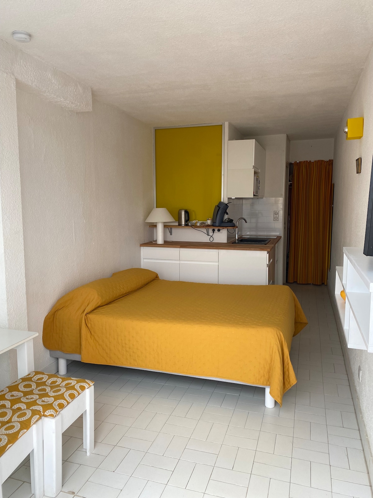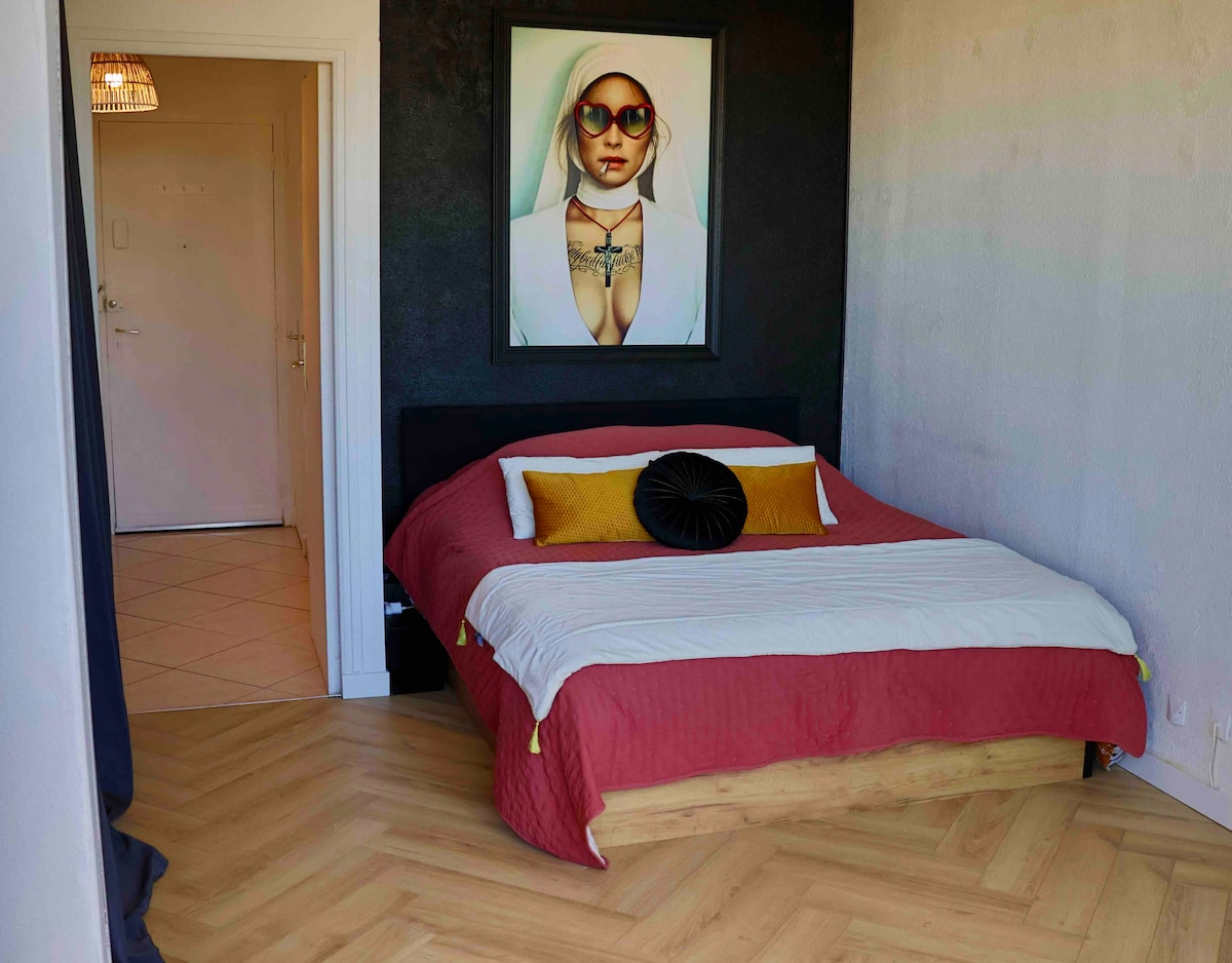 Hangulatos, nagyon világos stúdió, amely a 17 m² -es, légkondicionált tengerre néz Heliopolis központjában, a 4. emeleten és a legfelső emeleten, 5 m² -es terasszal, tengerre néző kilátással. A ++ ✔ Légkondicionált. ✔ Kilátás a tengerre. ✔ Nincs szolgáltatási díj. 2022-ben ✔ felújítva. ✔ Szálmentes internet és intelligens TV. ✔ Ágynemű, törölköző, törölköző biztosított. ✔ A reggelihez érkezéskor szükséges: kávé, tea, csokoládé. ✔ Biztonságos privát parkolóhely a P1-124-en