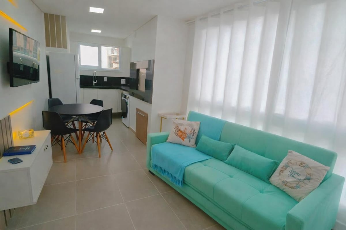 Díszített lakás, közel a tengerhez, terek, piacok, központ, 2 lift, 3 ares kondicionált, gázfűtés, Wi-Fi, autóterek. Legfeljebb 5 vendég elszállásolására alkalmas, két szoba egy lakosztály, közösségi fürdőszoba, nappali, mosógépes mosoda, konyha, grillező. * A mobiltelefon-jel 📶 100% -ban a legfelső emeleten található. *TVs smart com GloboPlay released. * Ágyneműt, arctörlőt és konyharuhát kínálunk. *Székek és strandszekér, esernyő, hűtő. * Grillezőnyársak.