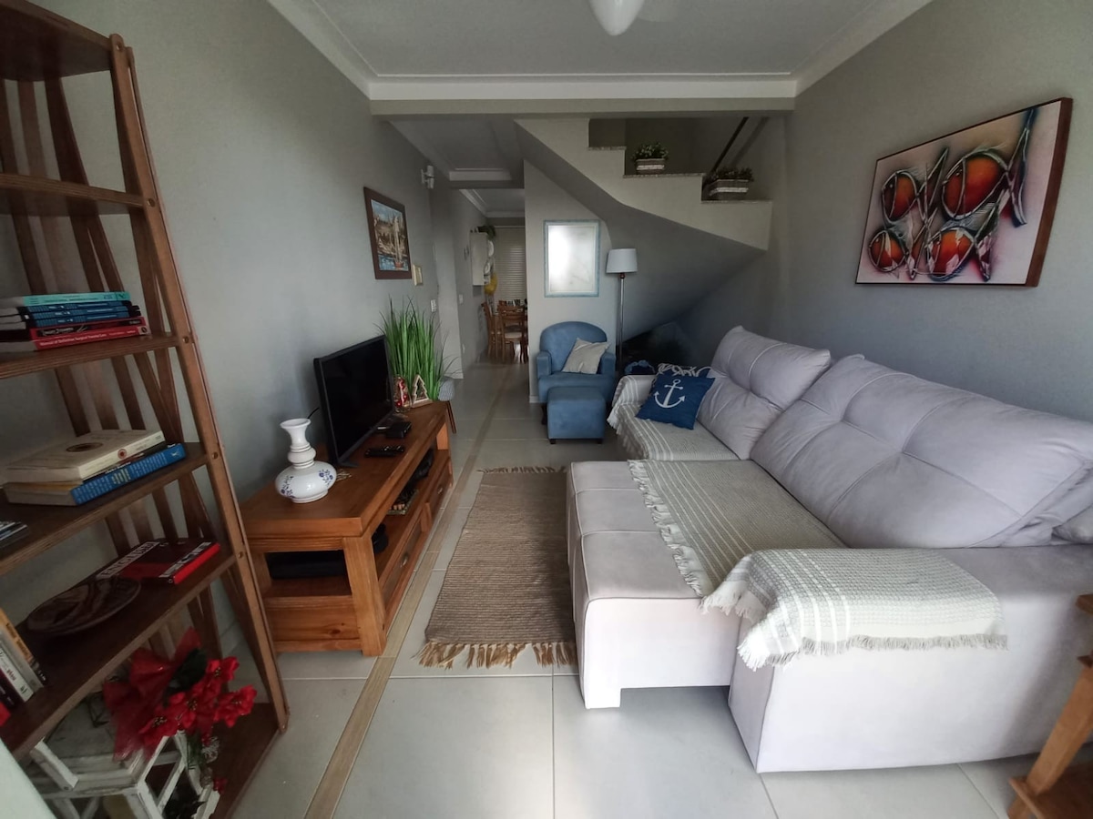 Amplo sobrado com 3 quartos (1 suite), em condomínio fechado a 50 metros do mar. Garagem coberta, split em todos os quartos. Todo o comércio fica a 300 metros de distância. Praia supertranquila, ideal para famílias.