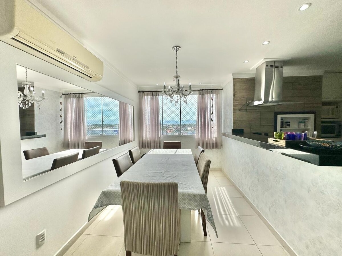 Tágas, napfényes és jól szellőző lakás, 9. emelet, 3 hálószobával (az egyik saját fürdőszobával), mindegyikben 1 kétszemélyes ággyal, valamint egy kanapéággyal az integrált nappaliban. Két (2) garázs és nagyszerű elhelyezkedés. A strand mellett, av. Paraguassu és a centrinho de Capão da Canoa. Közel a terekhez, a sétányhoz, éttermekhez, gyógyszertárakhoz, fagylaltozókhoz, kávézóhoz, hentesüzlethez, szupermarkethez, élelmiszerboltokhoz, bankokhoz, üzletekhez stb. Mindenesetre nagyszerű helyen, mert mindent meg lehet tenni gyalog.