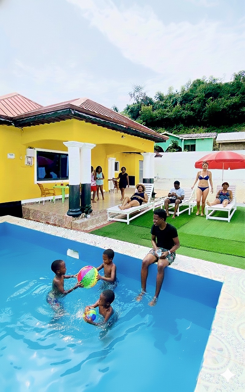 ⭐️⭐️⭐️⭐️⭐️A vendégek kedvenc ingatlana a környéken📍😍😍😍😍, Élvezd a nyugodt, biztonságos és elzárt ingatlant, amelyet a tökéletes kényelemre és magánéletre terveztek. Minden szobában van egy hatalmas franciaágy + egy egyszemélyes ágy, amely kényelmesen elfér akár 3 vendéget. Foglalj akár 4 privát szobát. Ingyenes úszómedence és ingyenes reggeli Békés környéken, de csak pár percre a legjobb látnivalóktól, például a Cape Coast kastélytól és a Kakum Nemzeti Parktól. ·Ideális egyedül utazó kalandoroknak, családoknak és csoportoknak, akik felejthetetlen élményre vágynak.